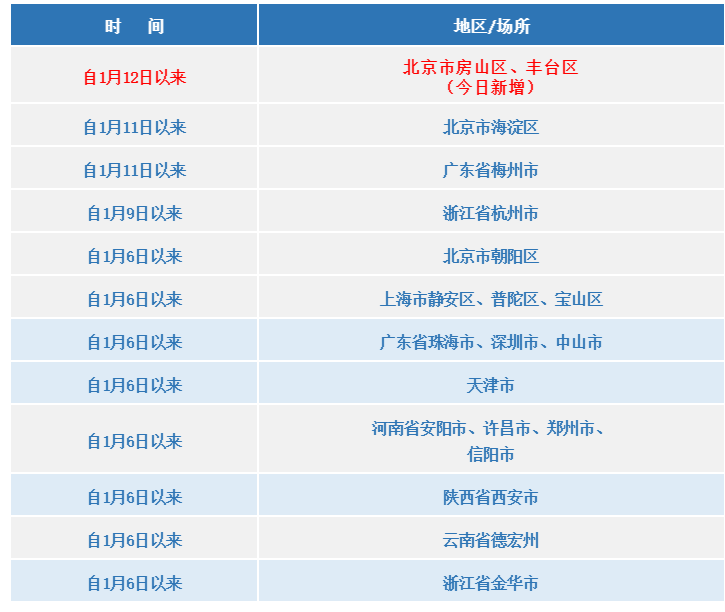 如果您近期有以下地区的旅居史,请第一时间向社区(村)、单位或入住酒店报备,配合做好各项疫情防控工作。