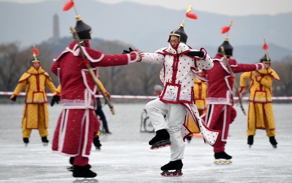 冰嬉,作为一项体育运动,宋已有之,明朝成为宫廷体育活动,清朝被列为必练的军事技术项目。故宫博物院馆藏两幅《冰嬉图》,形象再现了当时宫廷冰嬉的盛大场面。如今,北京北海的漪漾堂,就是清朝帝后们观赏冰嬉之所。