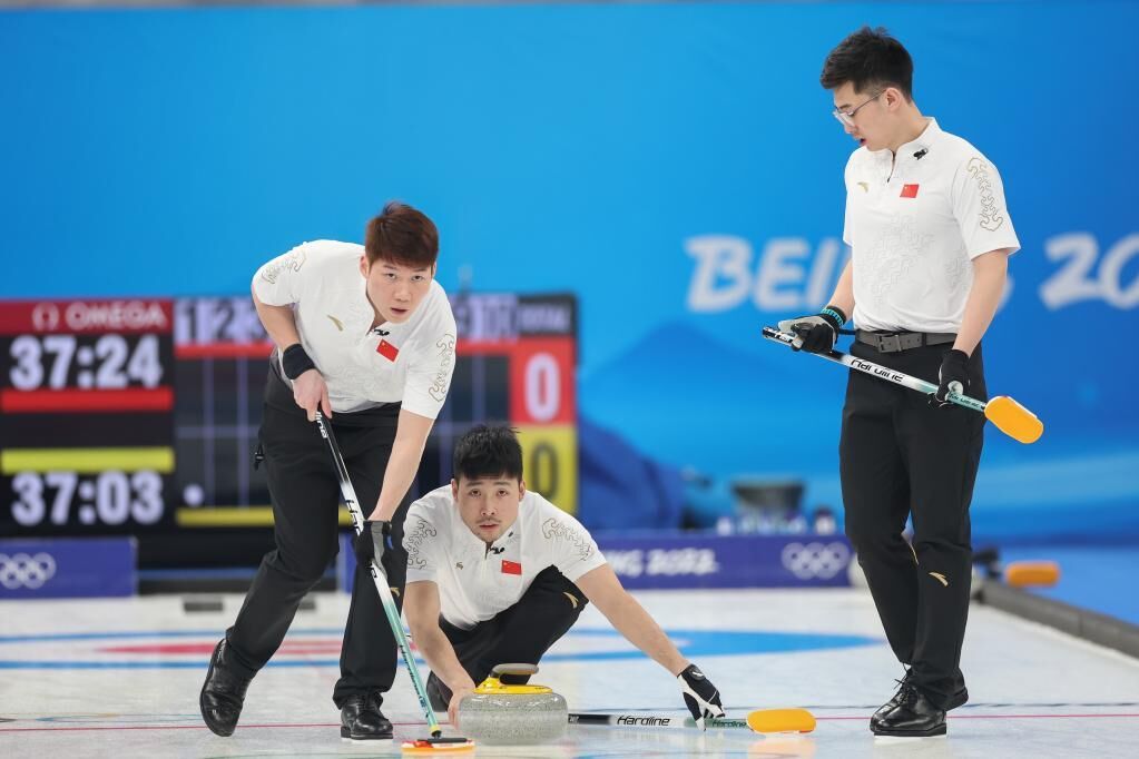 第九局两队在关键球均出现失误,特别是马秀玥首壶把本队中心得分壶不慎打掉,好在他最后一投面对丹麦队两分牵制精准“双飞”,形成“流局”,保住最后一局后手优势。最后一局中国队将局面简单化,丹麦队最后一投力量过大,马秀玥轻松将大本营内的对手壶打掉,帮助中国队以5:4锁定胜局。
