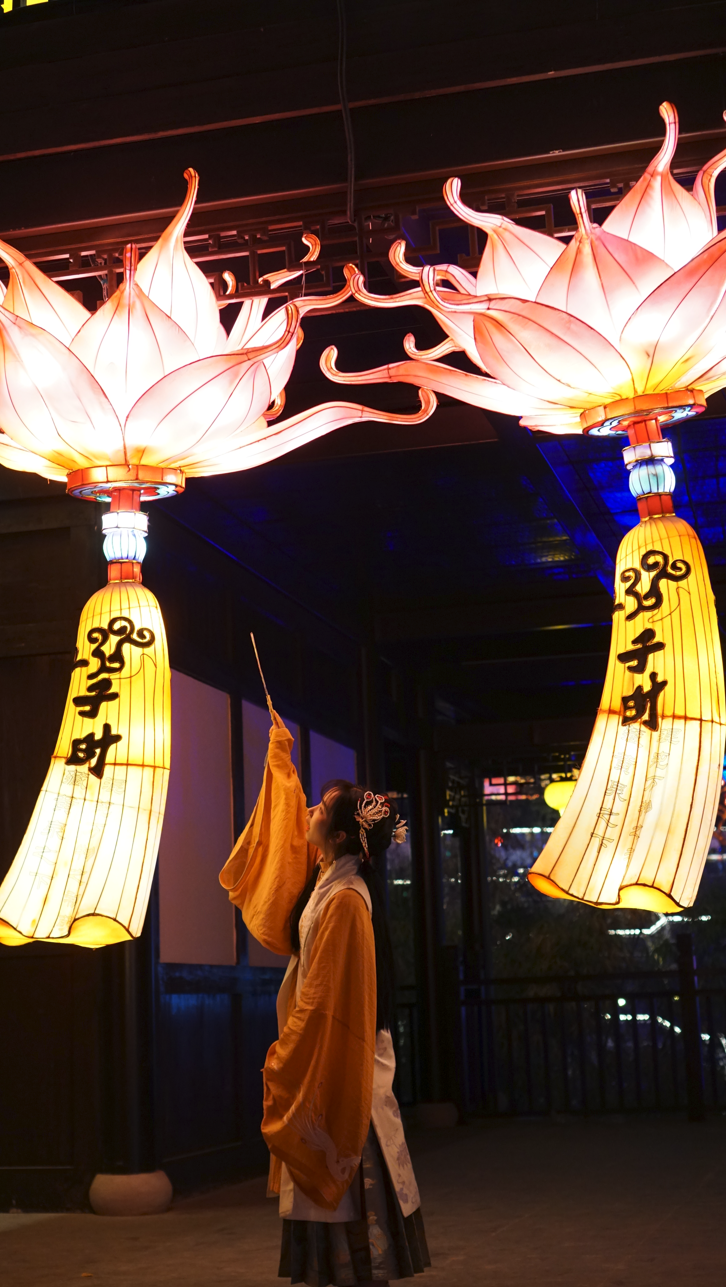 在自贡彩灯展现场,我还见到了许多穿汉服的小姐姐们打卡,现场有种“东风夜放花千树,更吹落、星如雨”的意境。