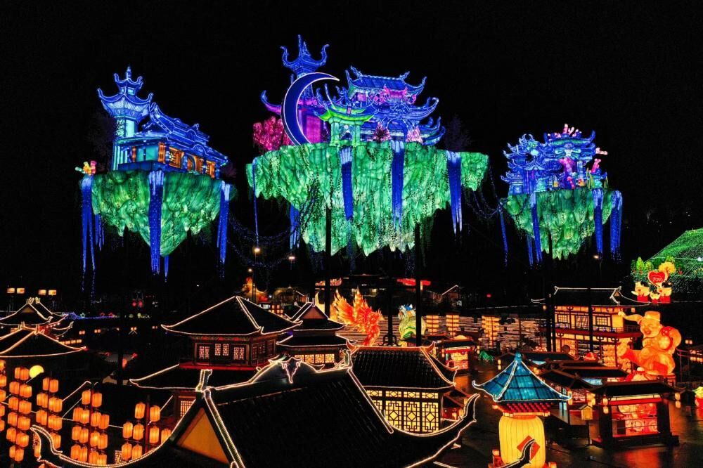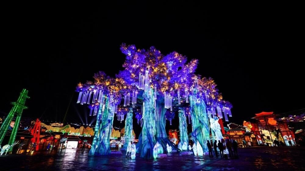 去年,让自贡彩灯展“出圈”的是台湾作家廖信忠随手一发的微博。后来,热搜一个接一个,“天下第一灯”的称号进阶为“宇宙第一彩灯展”。原定3月闭园的自贡彩灯展,一直延长到10月,吸引了108万游客。