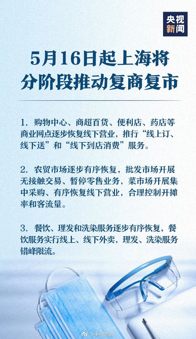 5月15日上午举行的上海市疫情防控工作新闻发布会上,上海市副市长陈通表示,为做好群众基本生活保障和生活物资供应,上海确定“保基本、全覆盖”工作目标,大力推动网点节点应开尽开、保供人员应返尽返,上海全市运营商业网点从最低谷的不到1400个,增加到10625个,日配送订单达到500万份。 接下来,按照“有序放开、有限流动、有效管控、分类管理”原则,严格落实各项疫情防控措施,从5月16日起,分阶段推进复商复市。