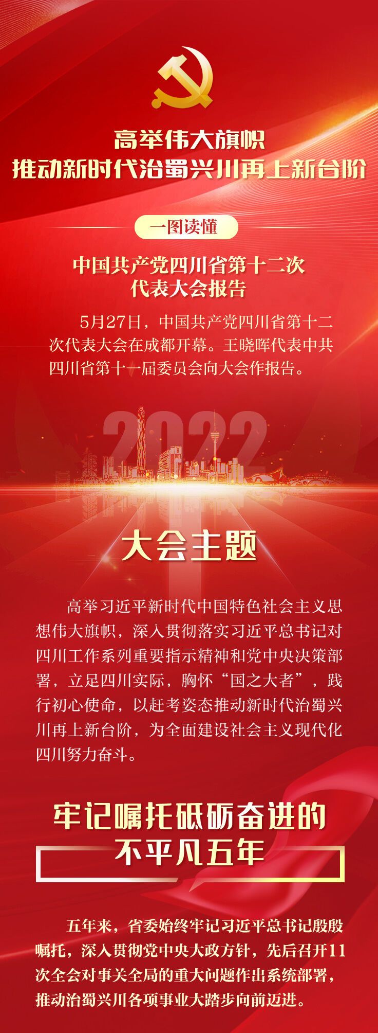 5月27日,中国共产党四川省第十二次代表大会在成都开幕。王晓晖代表中共四川省第十一届委员会向大会作报告。