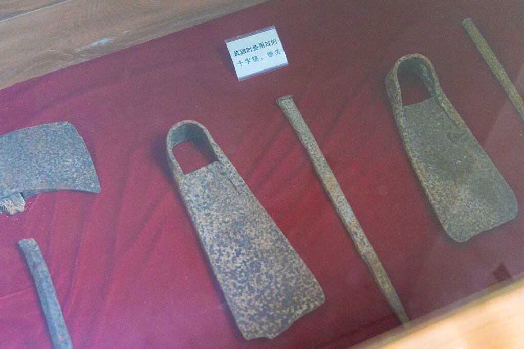 无私奉献,不惧艰辛,众志成城加快铁路建设,是当时筑路民工精神面貌的真实写照。实物陈列室内收集展示了筑路民工用过的铁锤、锄头等工具,不少工具已经带着斑斑锈迹。