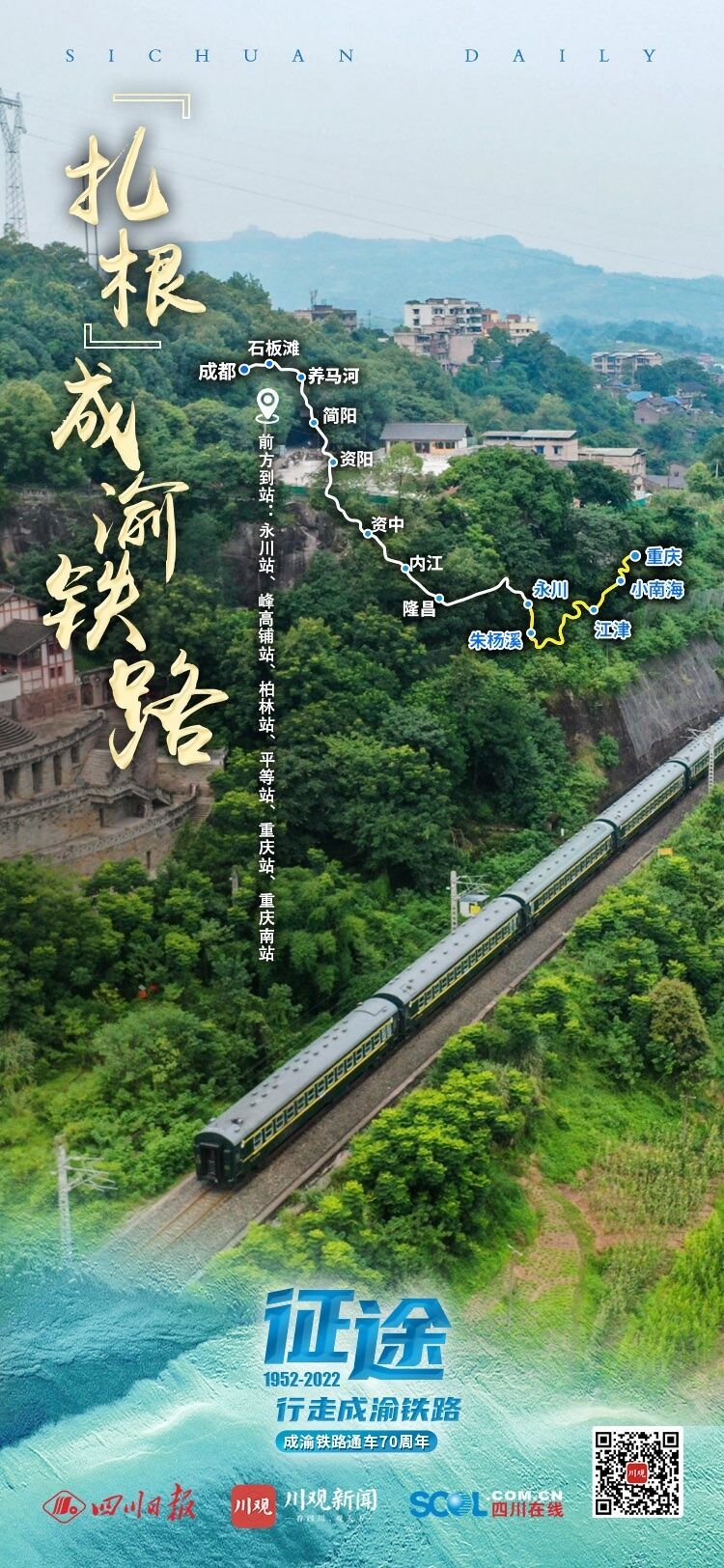 来自五湖四海的人们汇聚到成渝铁路线,铁轨一段段从重庆铺到成都,站房一座座沿线建起,树也一棵棵栽下。