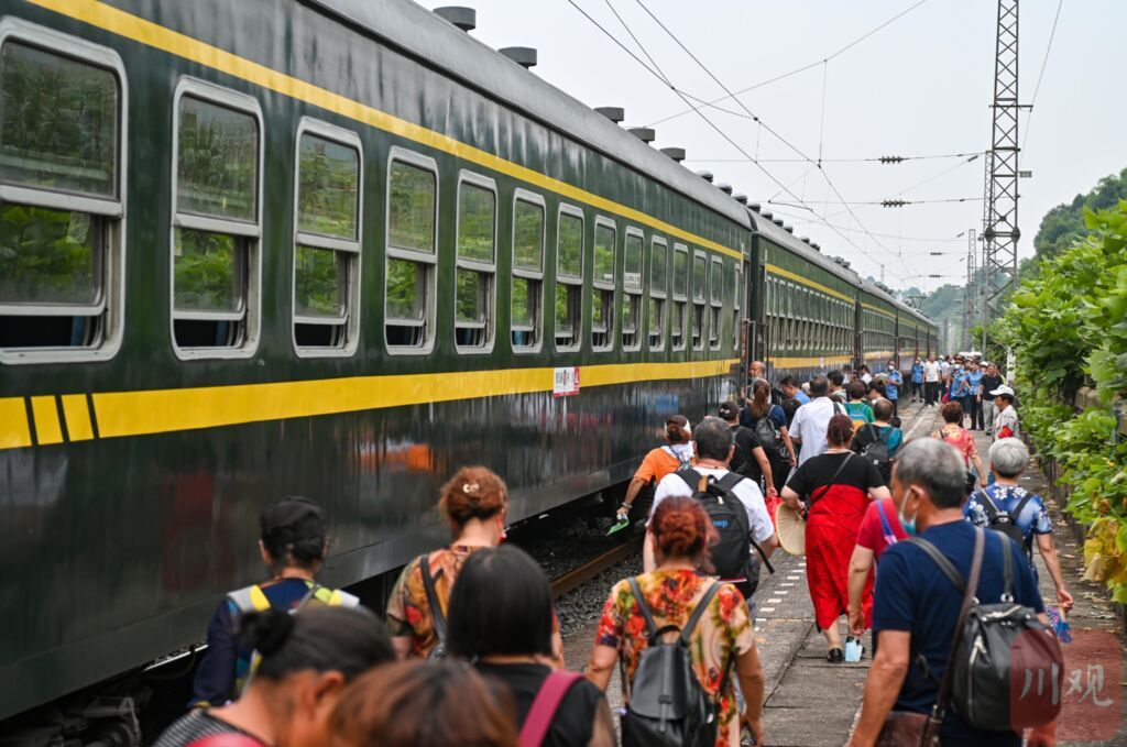 火车到站时,前来接站的还有当地农家乐经营者,举着招牌,带着已经预约好的乘客前往景区游玩。“80块钱耍一天,管吃管住,性价比高。”游客秦朝淑就在朋友的推荐下来到这里。“从柏林站到永川,乘坐公益火车只需要30分钟,比自驾还快。”