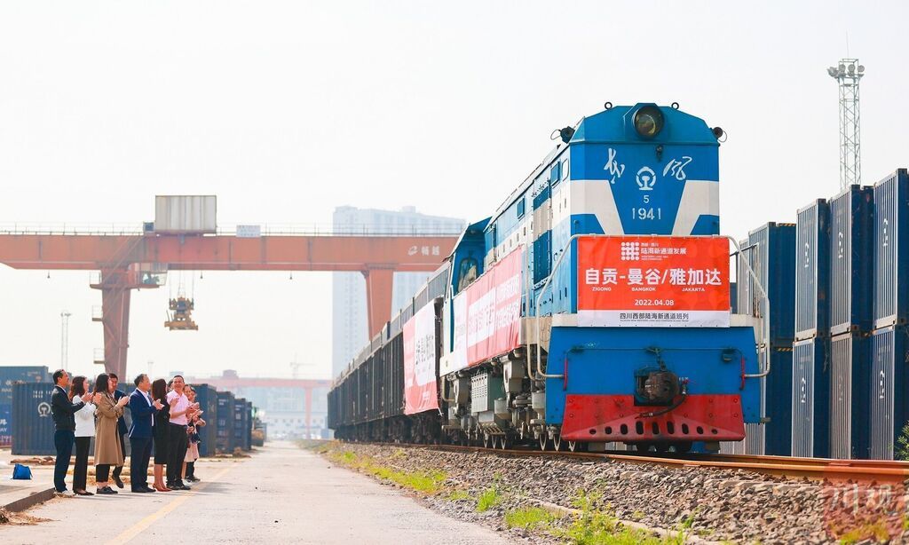 眼光向外,今年4月8日,统一品牌后的四川西部陆海新通道班列首次开行,一列载有上百吨“自贡造”焊条、焊粉等产品的国际班列从自贡南站驶出,抵达广西钦州港后,通过铁海联运到达泰国曼谷、印尼雅加达等地。