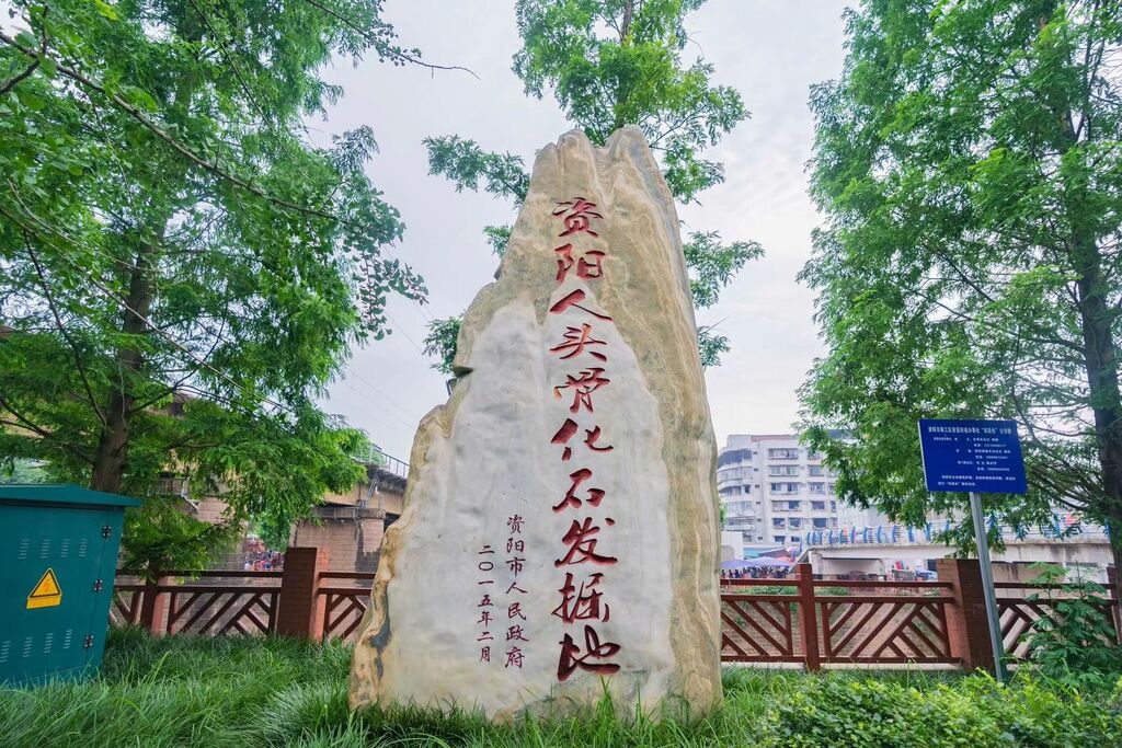 “‘资阳人’头骨化石为宣传推广资阳历史文化起到了重大作用。”资阳市雁江区文联调研员孟基林表示,正是这一发现,让资阳有了“蜀人原乡”的美誉。在昔日化石的发现地,树立了一块约有三人高的石碑,正面刻有“资阳人头骨化石发掘地”红色的大字,成为城市中一道靓丽的风景线。