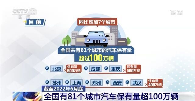 目前,全国共有81个城市的汽车保有量超过100万辆,同比增加7个城市。其中,北京汽车保有量超过600万辆,成都、重庆汽车保有量超过500万辆,苏州、上海、郑州、西安、武汉汽车保有量超过400万辆。