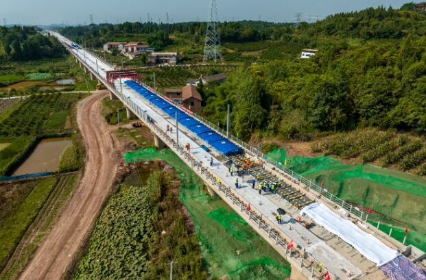 “无砟轨道施工是高铁铺轨建设前的最后一道工序,目前,成自宜高铁进入了无砟轨道全面施工阶段。”张宗伟介绍,今年是成自宜高铁施工的第四个年头,也是最重要的年头,各项施工计划都进入了“负重爬坡”的阶段;无砟轨道如期进入全面施工阶段,是确保铁路按期开通的关键,为计划今年11月开始铺轨作业提供了条件。近日,四川地区持续高温,各施工单位积极做好防暑降温保障措施,项目采取高温错峰施工,避开高温时段,各施工节点正按计划有序推进。