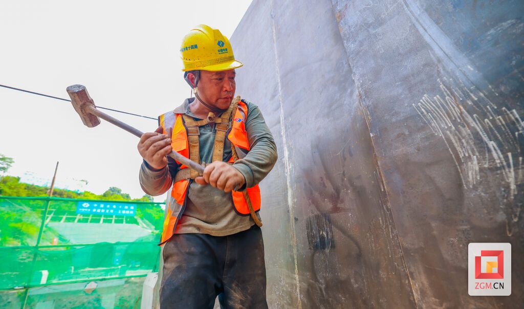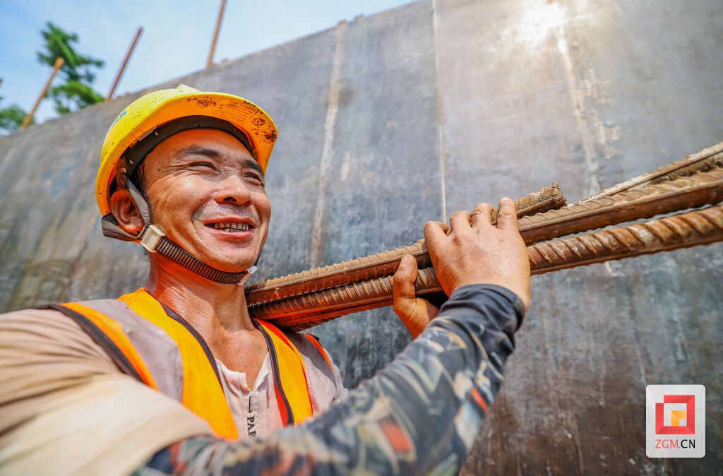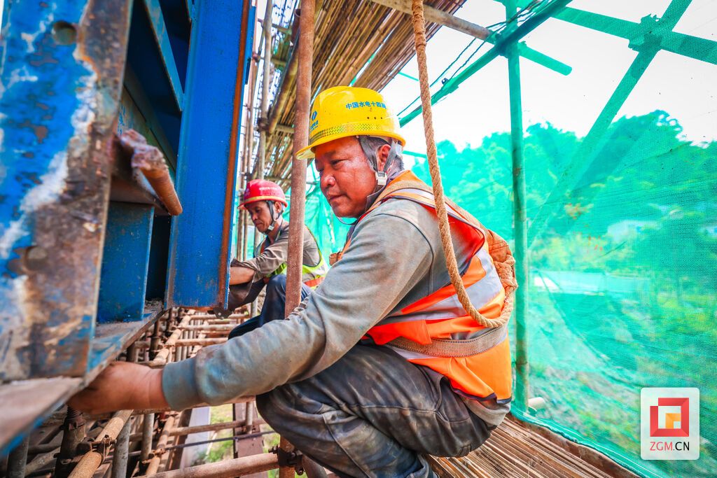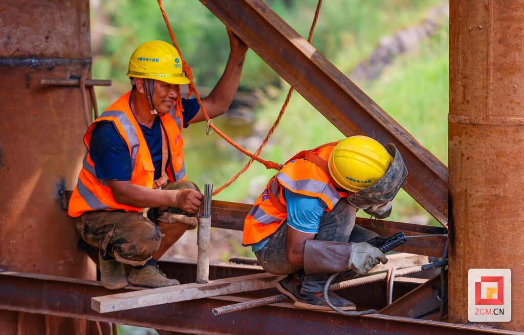 上午10时许,被太阳炙烤后滚烫的钢筋温度达到了七八十度,可以用滚烫来形容。焊工杨汉全戴着厚厚的防护手套,蹲在渡槽钢构架上,顶着高温焊接钢筋,衣服早已湿透和身体粘在一起,豆大的汗珠从额头、面颊往滚落,但他都无暇顾及。“钢筋笼是构件的骨架,如果焊接不好就会影响整个的抗拉能力,所以不论现场多热我们都必须保质保量完成这项工作。”杨汉全说,为了保证工程进度,他每天早上6点一直施工到11点,下午4点“凉快”点后,又继续施工到晚上8点。
