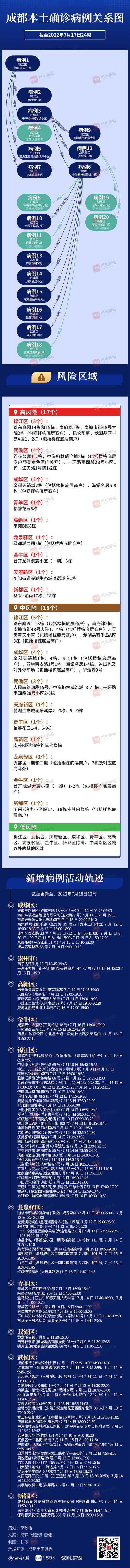 7月18日,成都市卫健委官方微信发布消息:7月17日0时-24时,成都市新增本土确诊病例8例,本土无症状感染者5例。截至17日24时,成都本轮疫情累计报告本土确诊病例14例,本土无症状感染者6例。