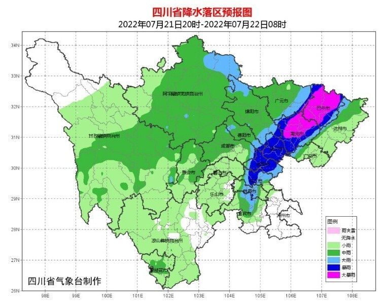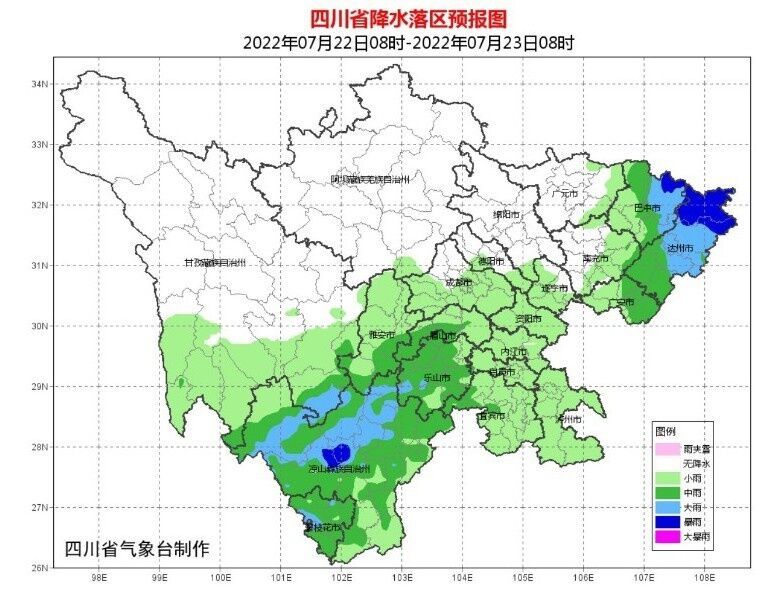 明天(7月22日)白天,盆地东北部等地方的雨还会接着下,但降雨强度减弱;攀西地区的雨势有所增强。