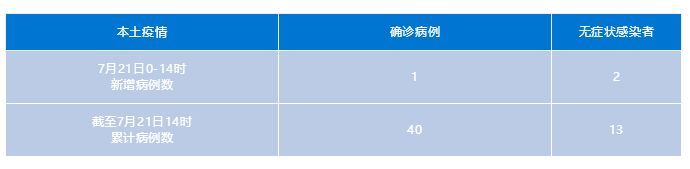 7月21日0-14时,成都市新增本土确诊病例1例,本土无症状感染者2例,均为隔离管控中的密切接触者。截至21日14时,本起疫情累计报告本土确诊病例40例,本土无症状感染者13例。