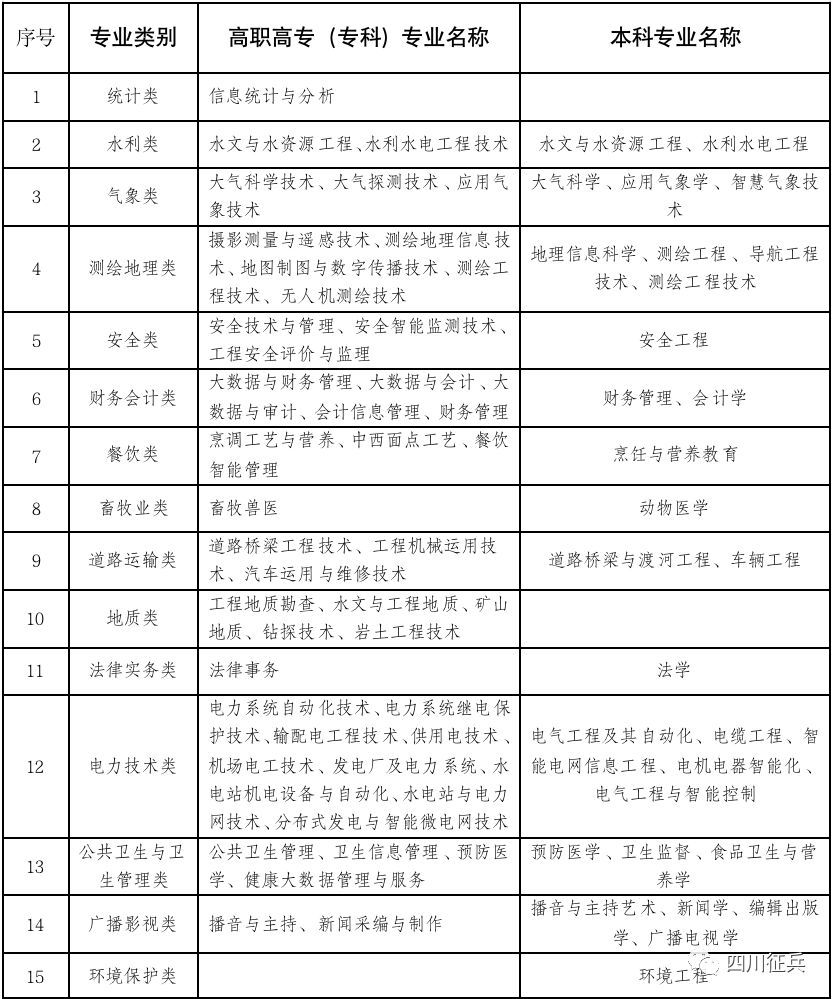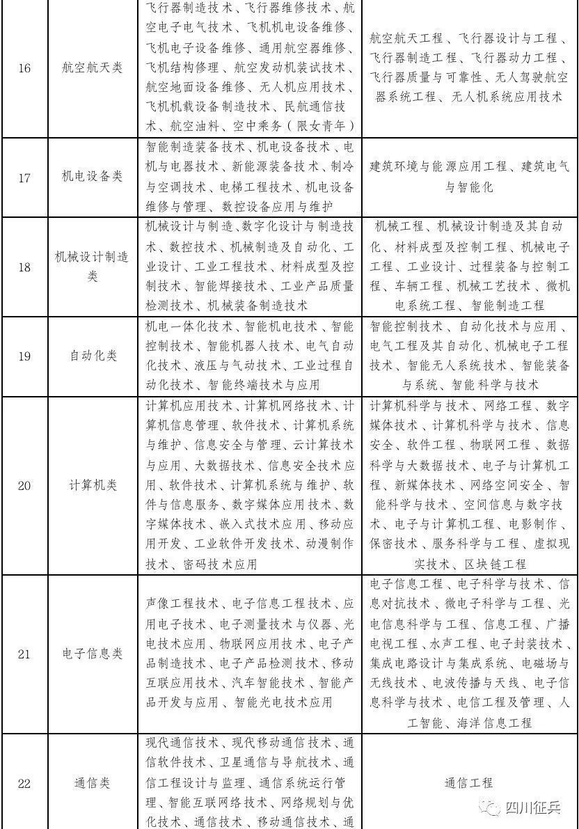 四川省2022年直接招收军士专业