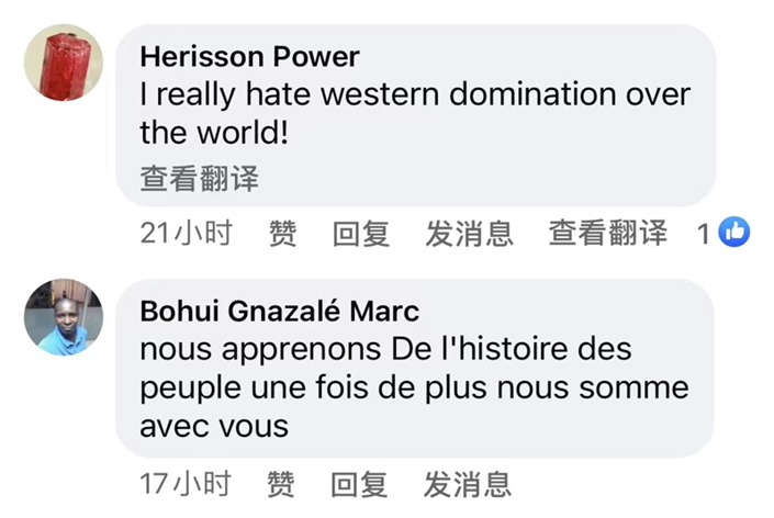 网友Bohui Gnazalé Marc : “从这里我们了解到了这段历史。我们绝对支持你们!”