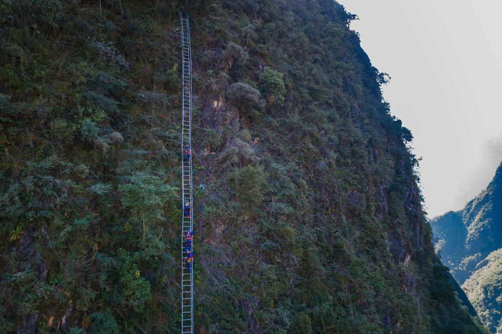 2020年10月,3段总长182米的钢梯架了起来,虽然攀登时间大大缩短至5个小时,安全性也有了一定的保障,但与河谷近乎垂直的天梯仍然令上山路充满艰辛。