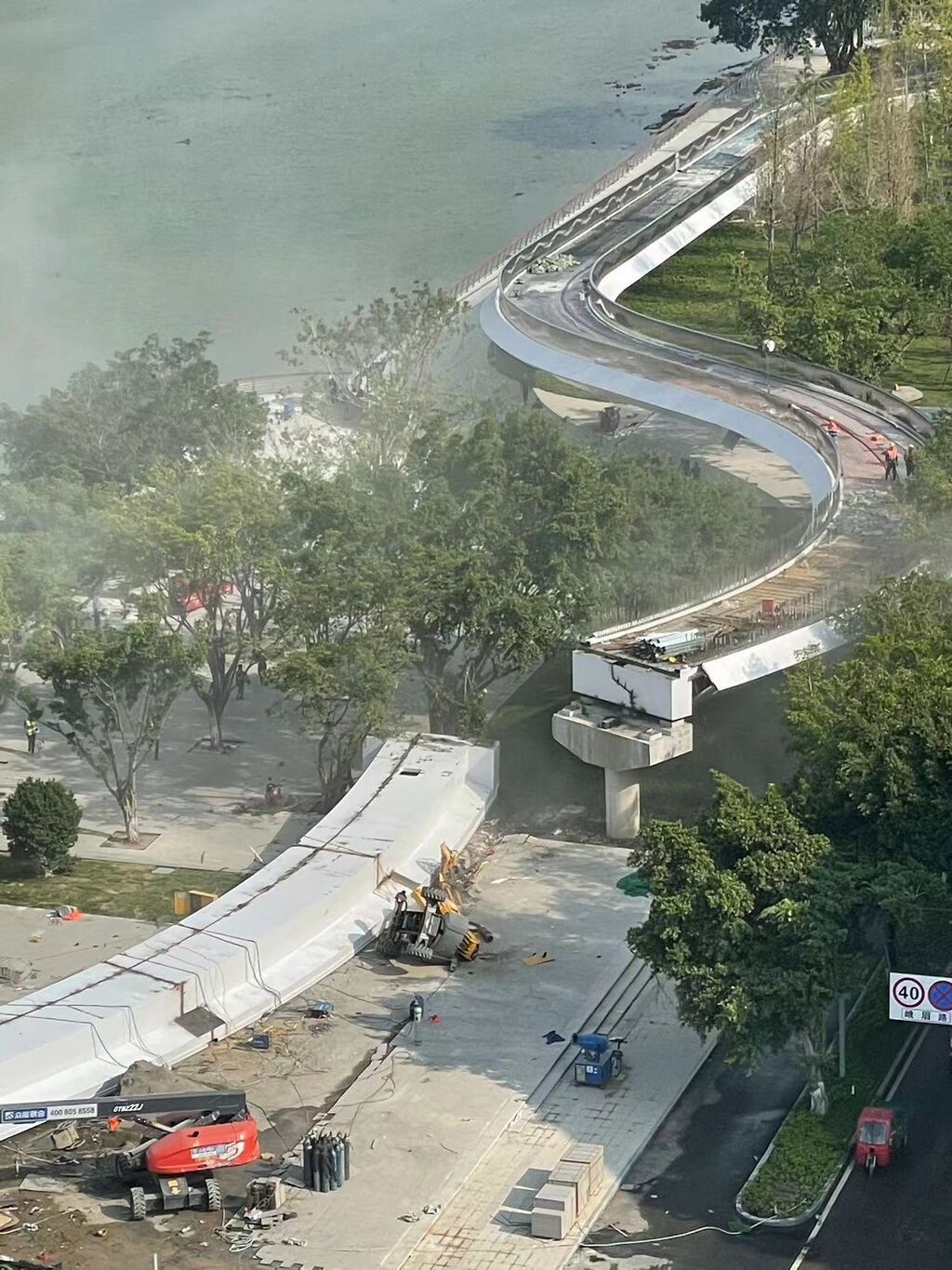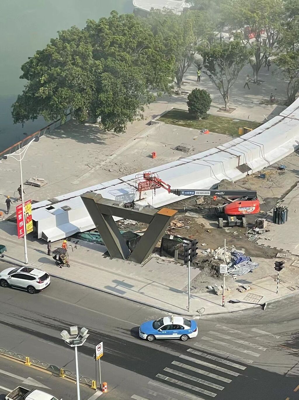 记者在现场看到,该人行天桥位于德阳市峨眉路南段与岷江东路交会路口,现场可见部分桥体坍塌。多个部门第一时间赶往救援,并设置警戒线,对现场市民进行引导撤离。目前,救援工作仍在持续进行中。