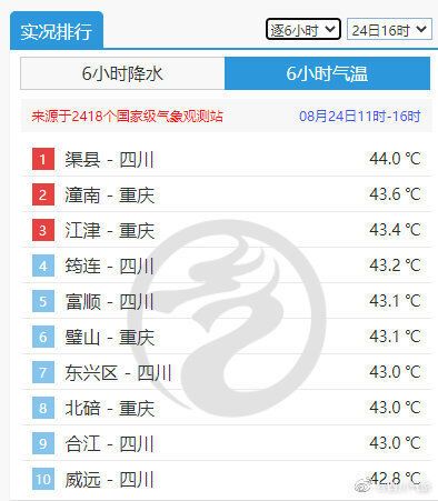 据四川气象官微消息,截至今日(24日)16时,达州渠县最高气温达到44℃,又双叒叕次打破了四川省国家气象站的最高纪录。 (最高气温发生时间:15时02分)