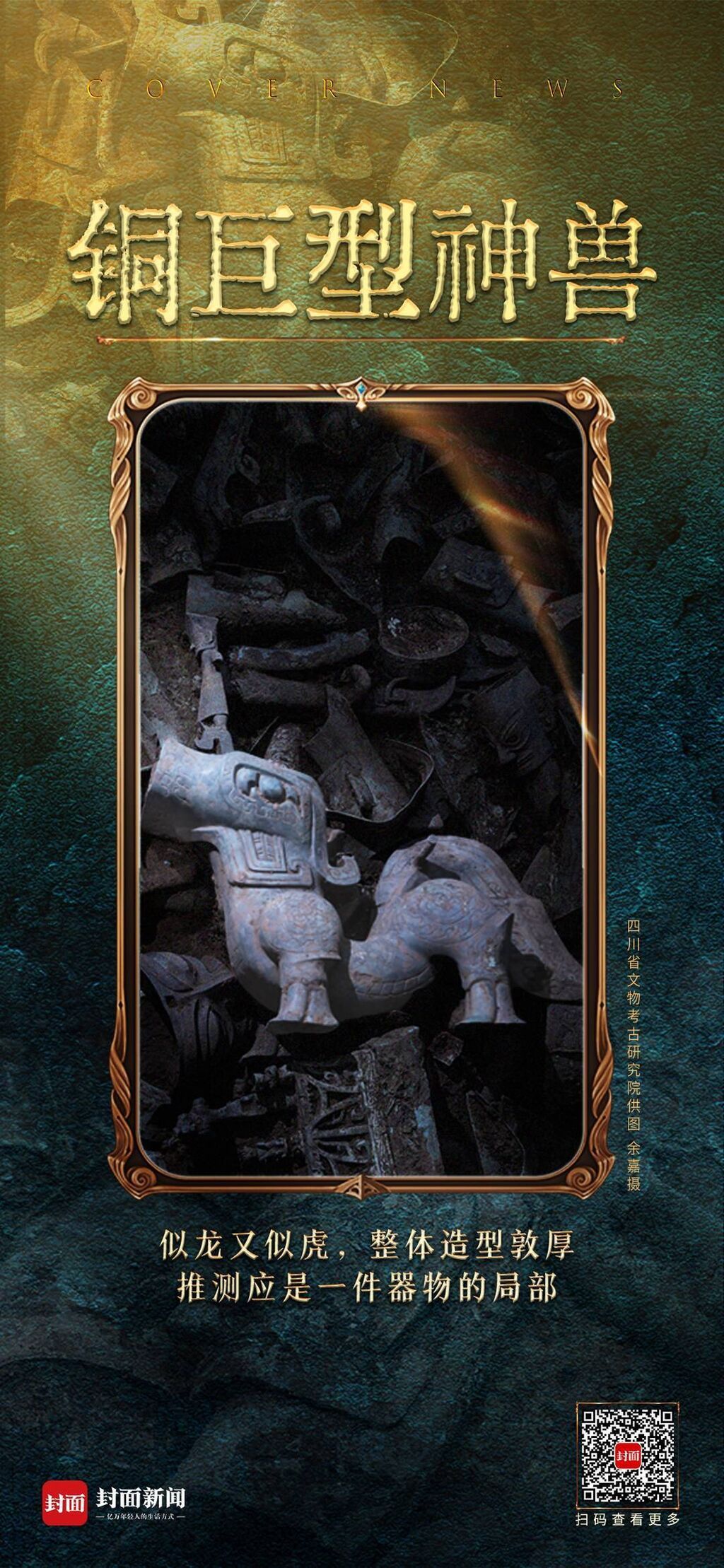 封面新闻记者此前了解到,这件巨型青铜神兽与此前3号坑发现的“机器狗”形制相同,大小不一。而此前,在8号坑新发现的明星文物“青铜神坛”最顶层,也有一只这样的神兽。或许,在三星堆人眼中,神兽是非常重要的祭祀角色。