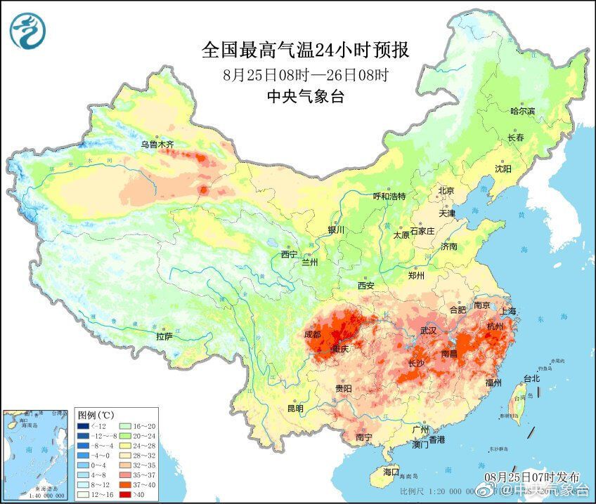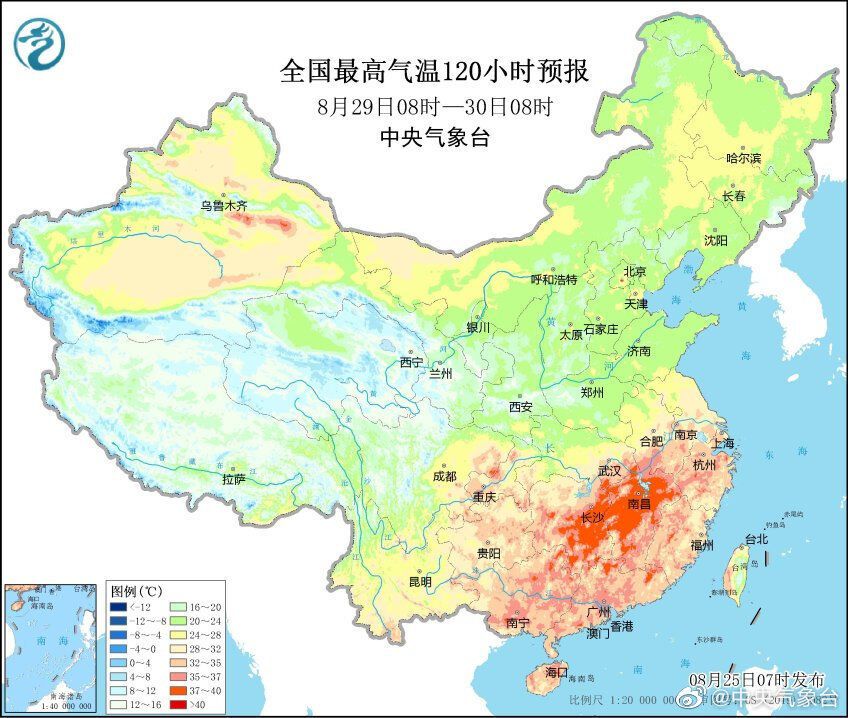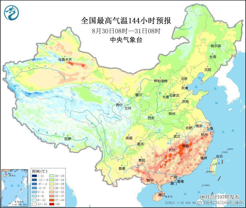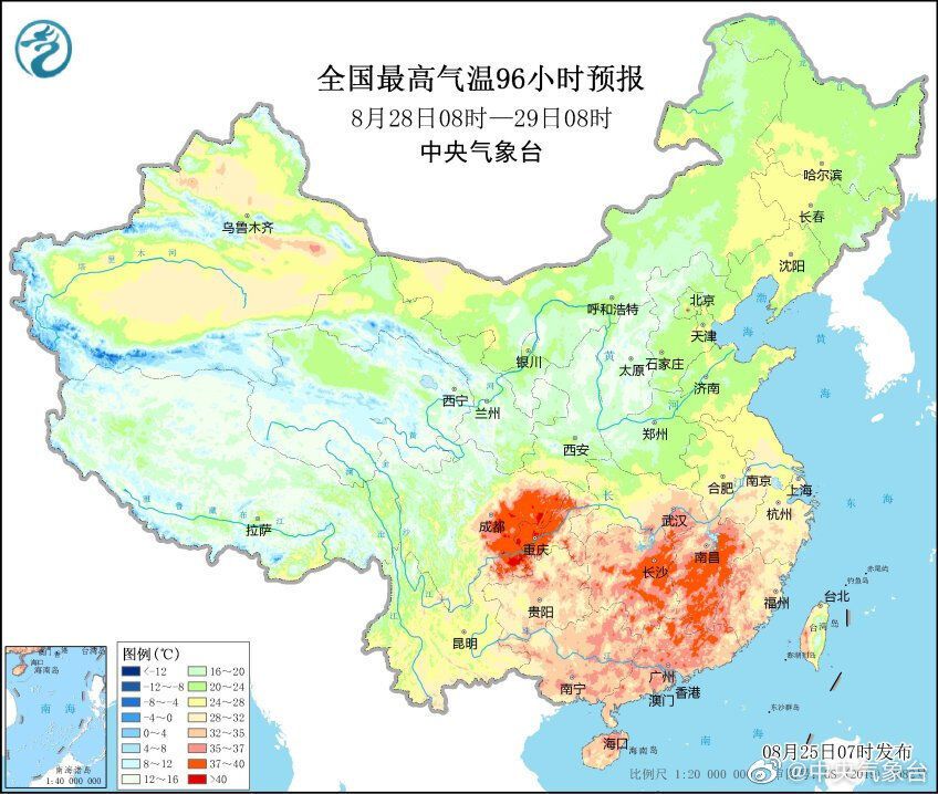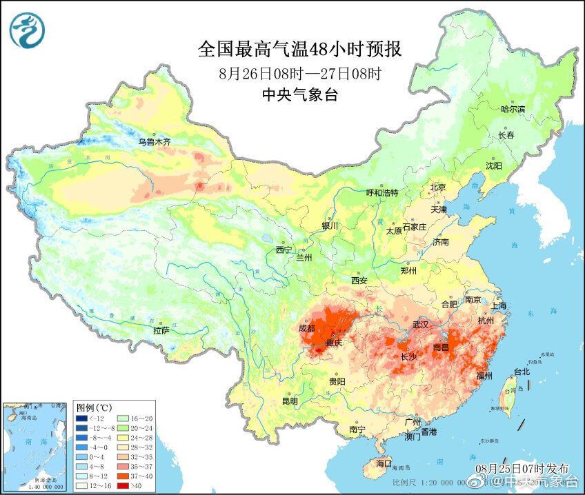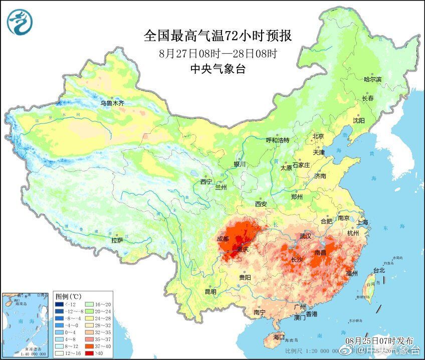 未来三天,四川盆地、江南等地的高温天气还将持续。8月26日起,四川盆地、江南地区高温范围有所减小、强度较前期减弱;受27日至30日西北地区东北、四川盆地的降雨过程影响,29日起四川盆地高温天气解除,31日起,南方大部高温消退,高温过程基本结束。