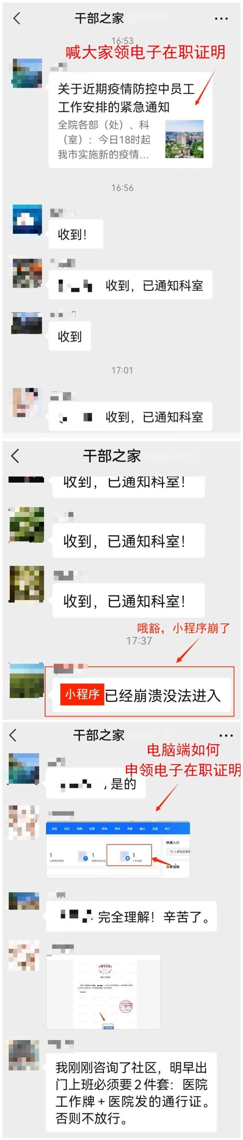 医院立即准备了纸质版在职证明,通知发出几分钟后,各科室、部门派出的代表就已经排起了长队。