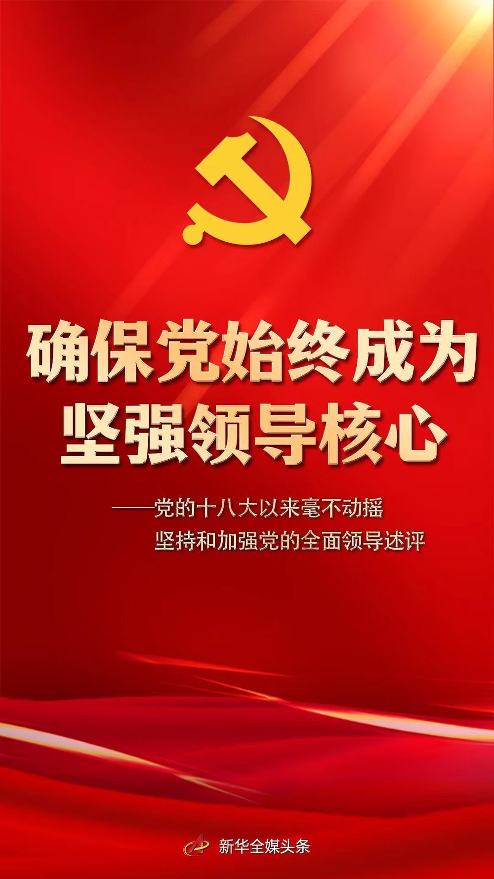 编者按:党的十八大以来,以习近平同志为核心的党中央团结带领亿万人民踔厉奋发、勇毅前行、团结奋斗,领航中国号巨轮破浪前行,推动党和国家事业取得历史性成就、发生历史性变革。即日起,新华社开设“领航中国”专栏,连续播发系列述评,全面反映党的十九大以来的重大成就和新时代10年的伟大变革,凝聚继续前进的强大力量。今天推出第一篇《确保党始终成为坚强领导核心——党的十八大以来毫不动摇坚持和加强党的全面领导述评》。
