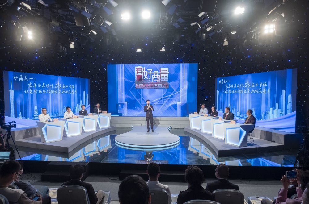 政协委员、政府部门代表、物业代表等在广州市政协“有事好商量”民生实事协商平台,围绕加强装修垃圾管理议题展开协商(2021年11月19日摄)。新华社发(庄小龙 摄)