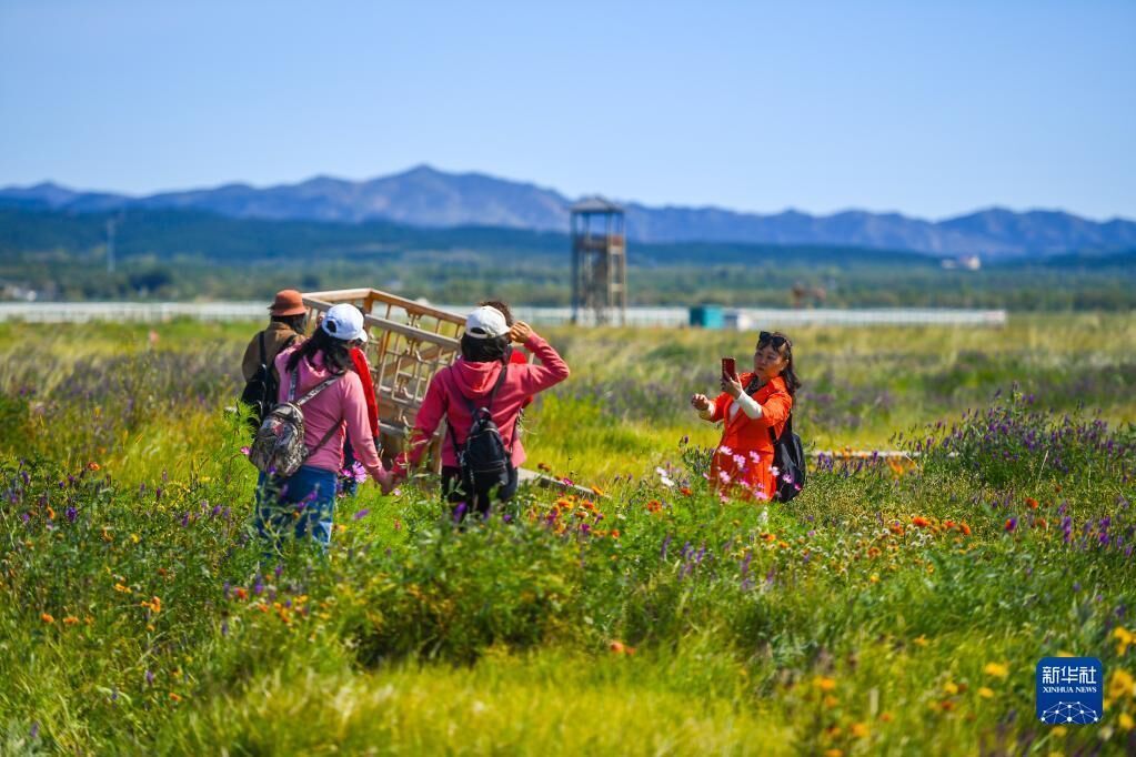 初秋的敕勒川草原,花香、草香扑面而来,绿草之间泛着淡淡鹅黄,与白、红、紫等各色小花绘成一幅层次鲜明的风景画。