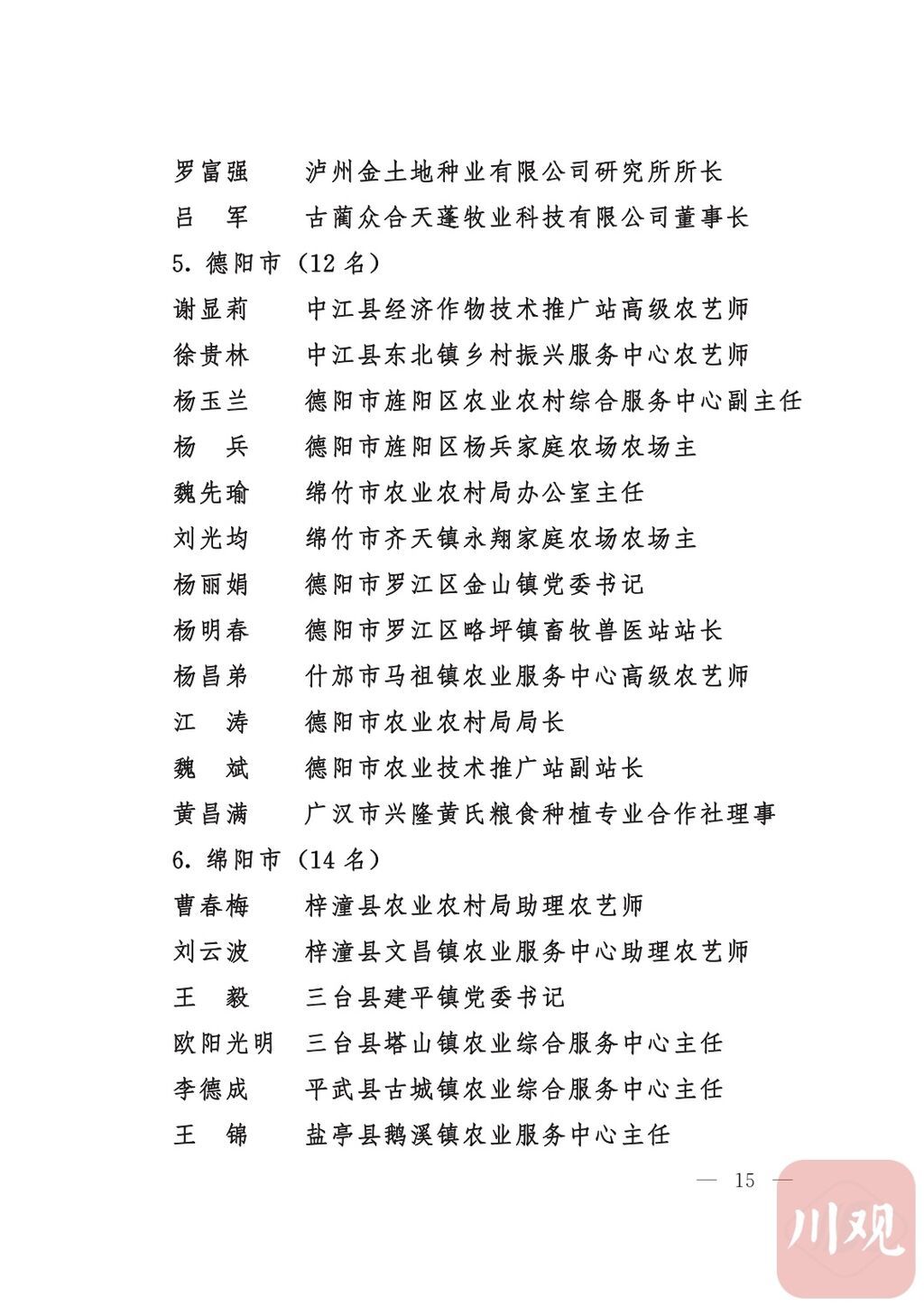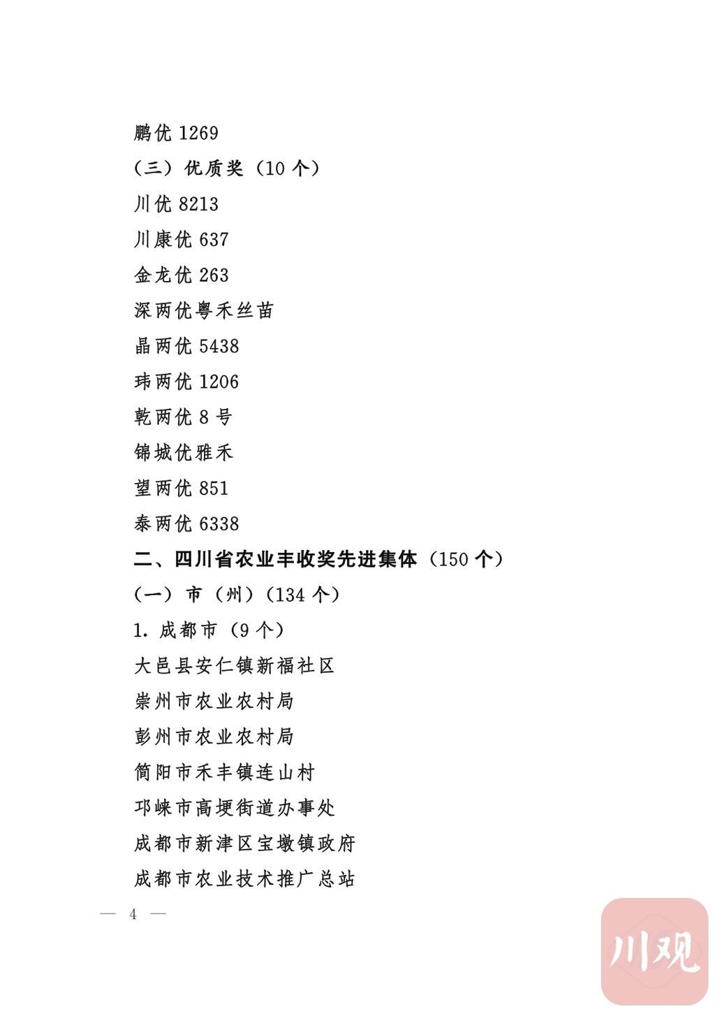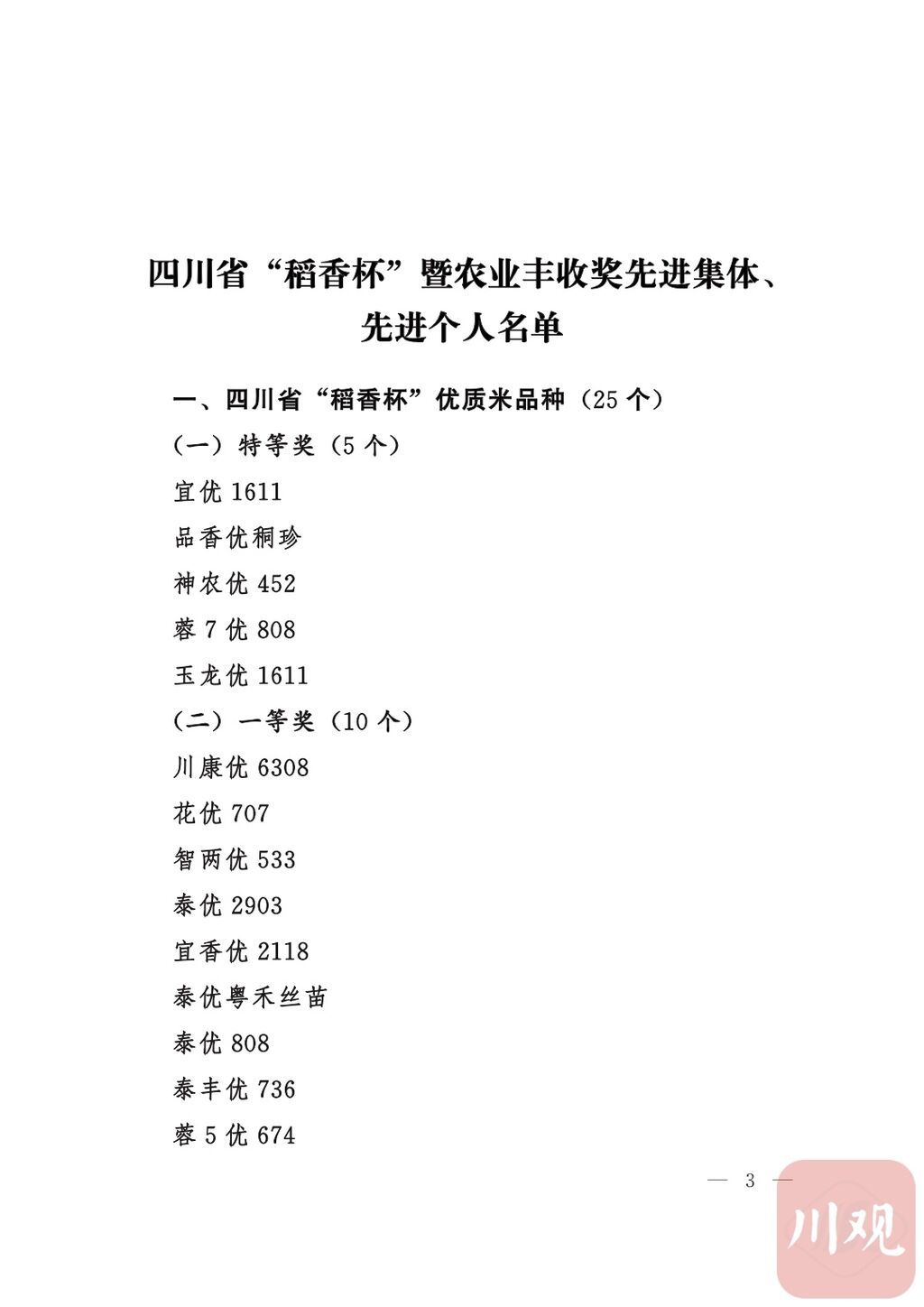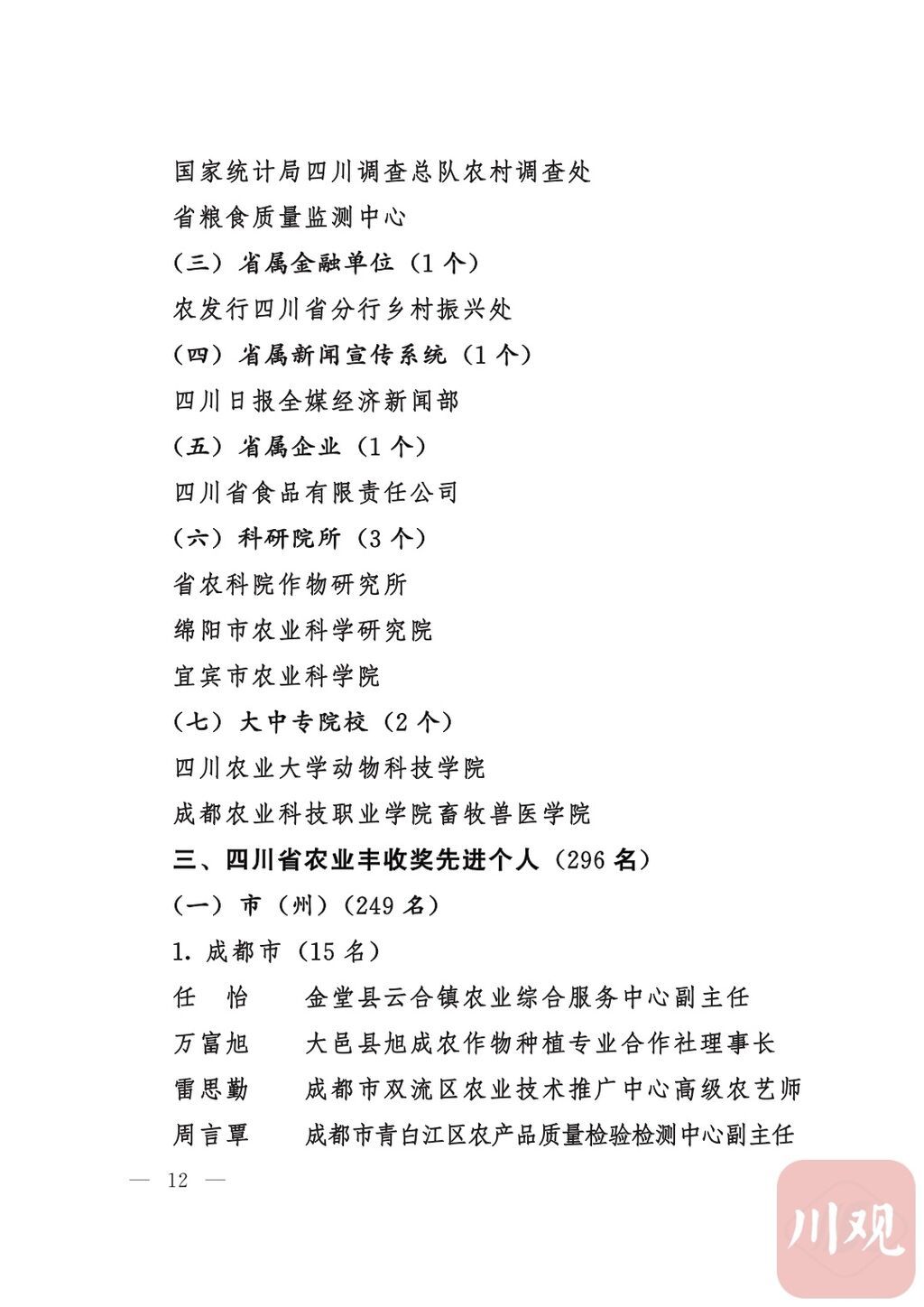 四川省“稻香杯”暨农业丰收奖先进集体、先进个人名单