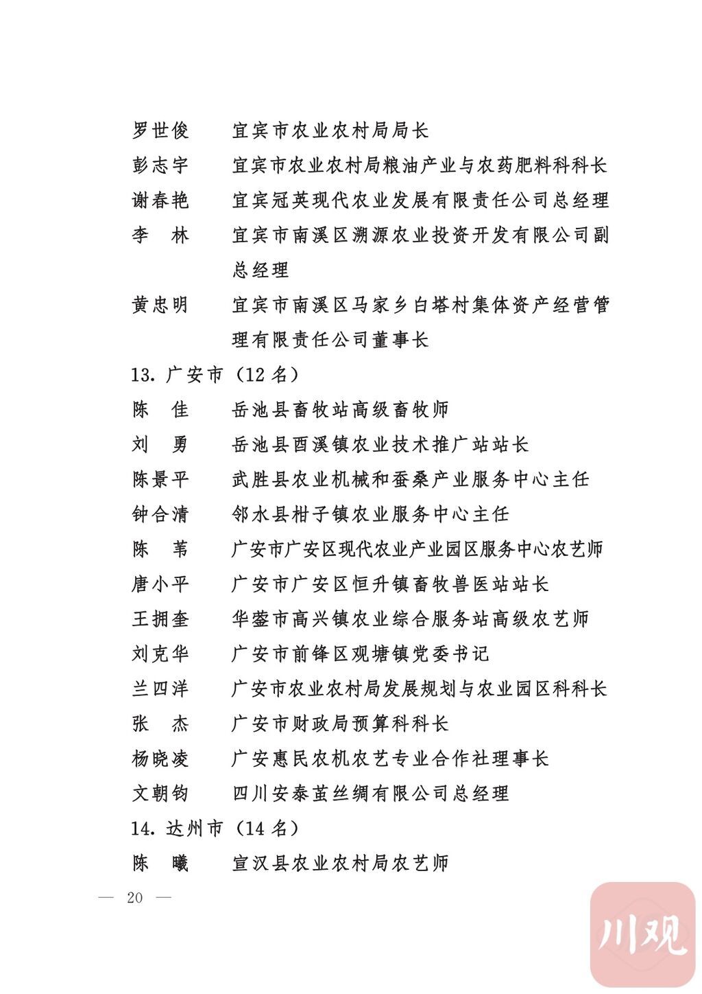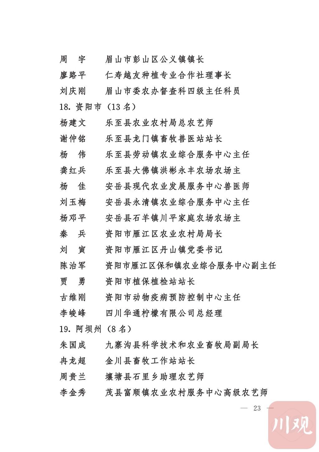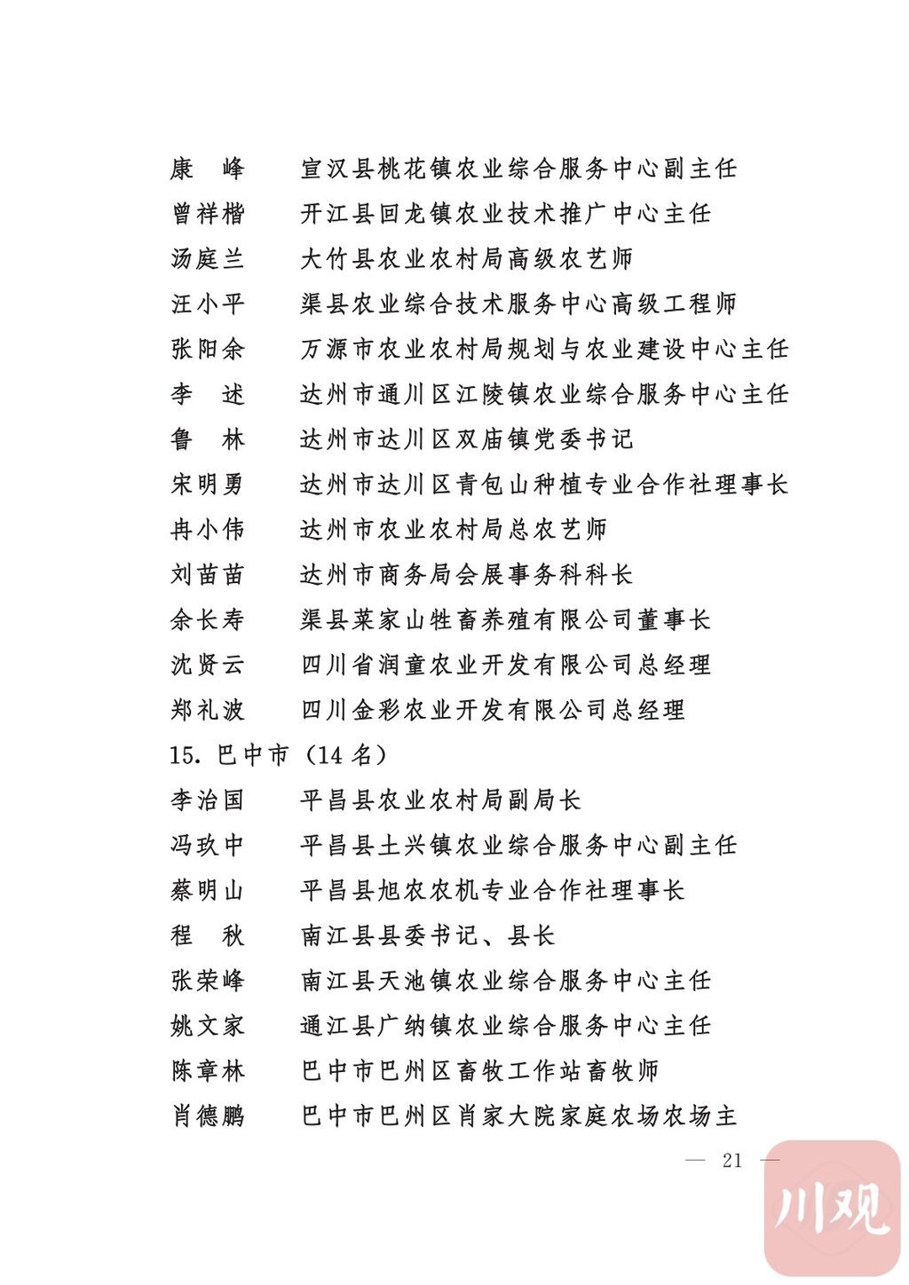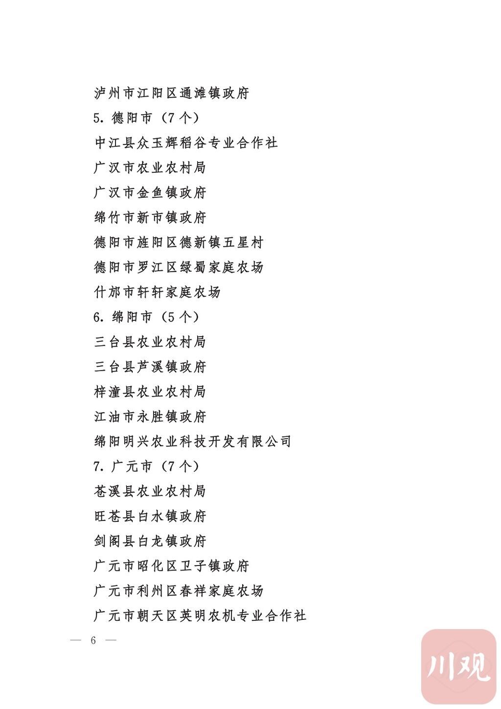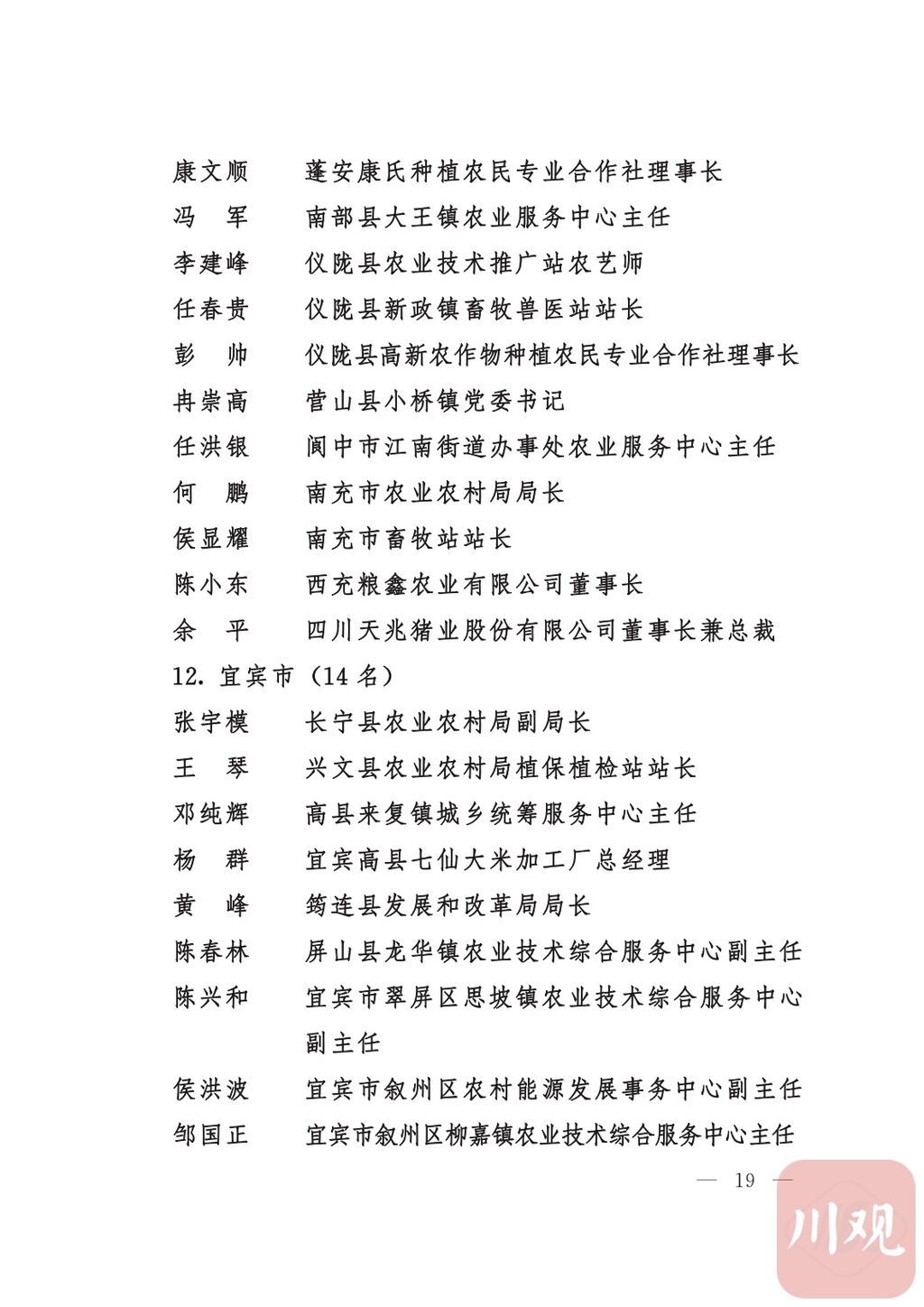 四川省“稻香杯”暨农业丰收奖先进集体、先进个人名单