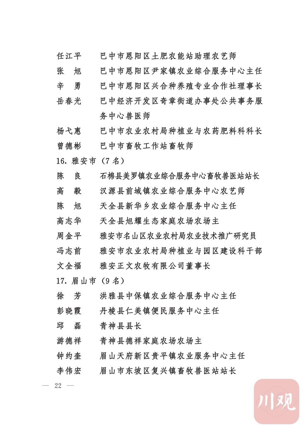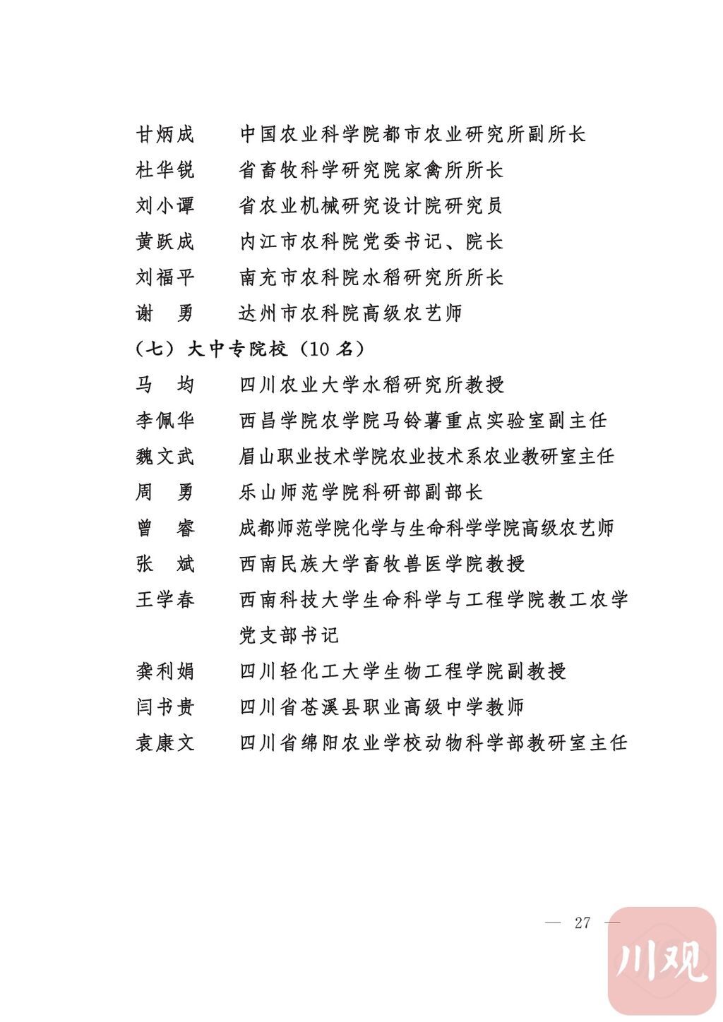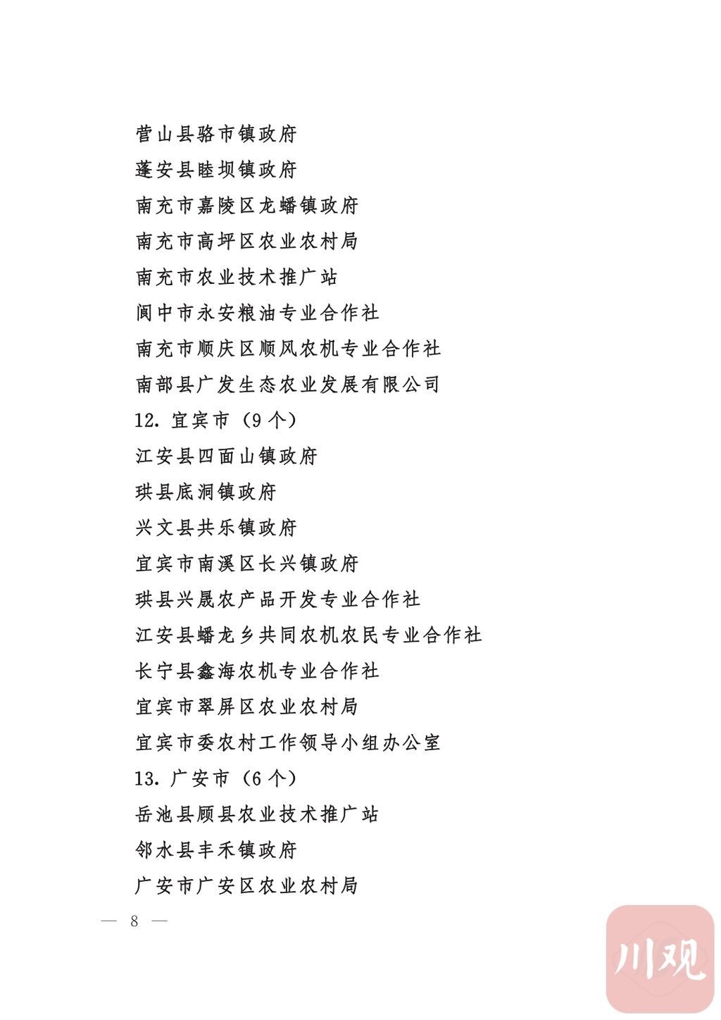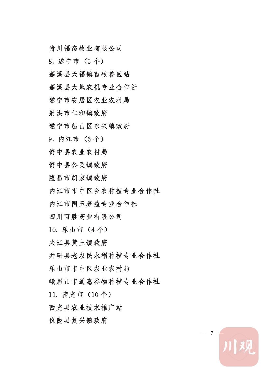四川省“稻香杯”暨农业丰收奖先进集体、先进个人名单