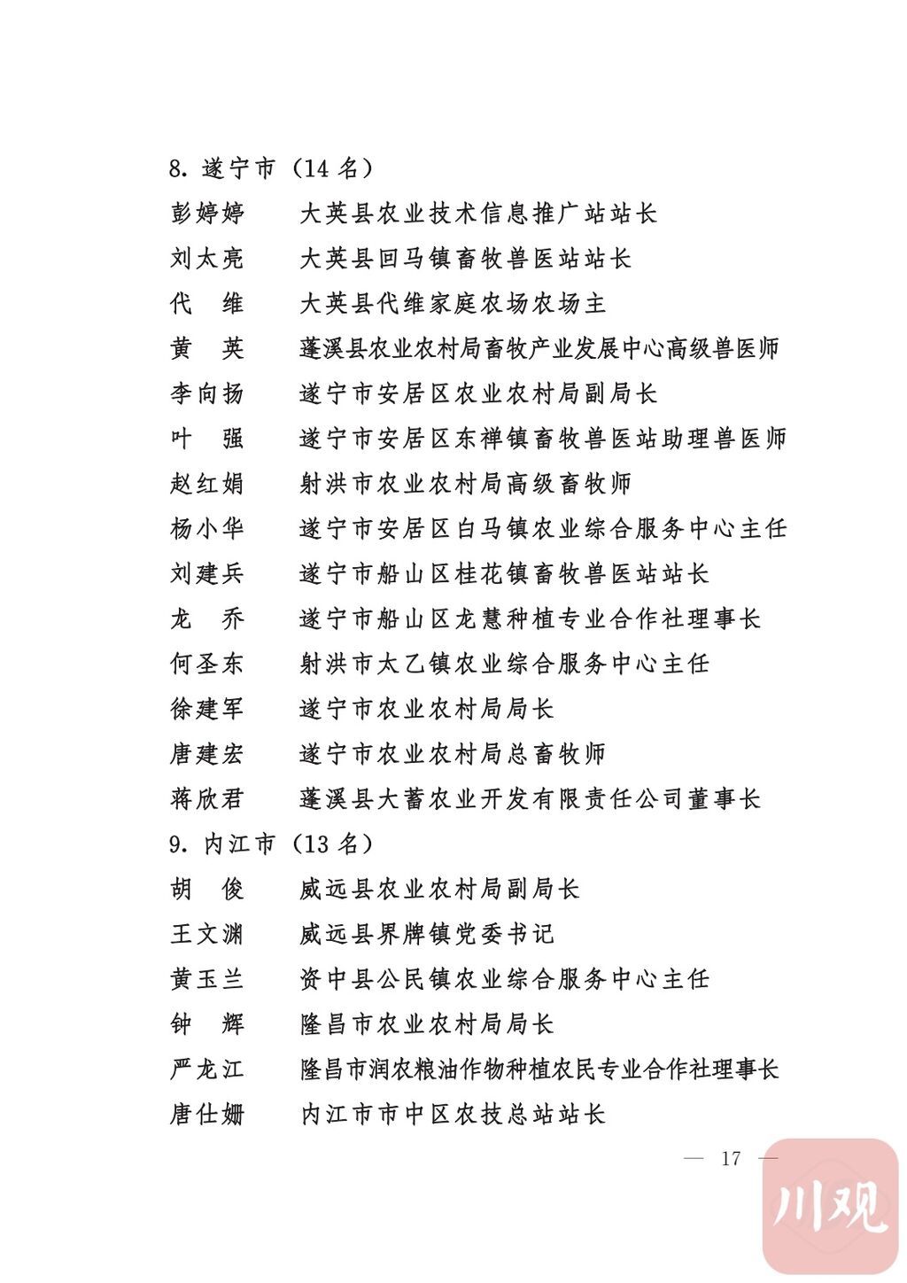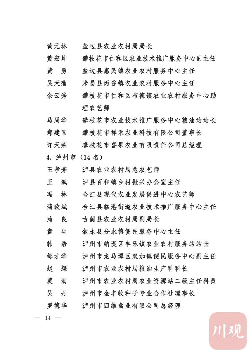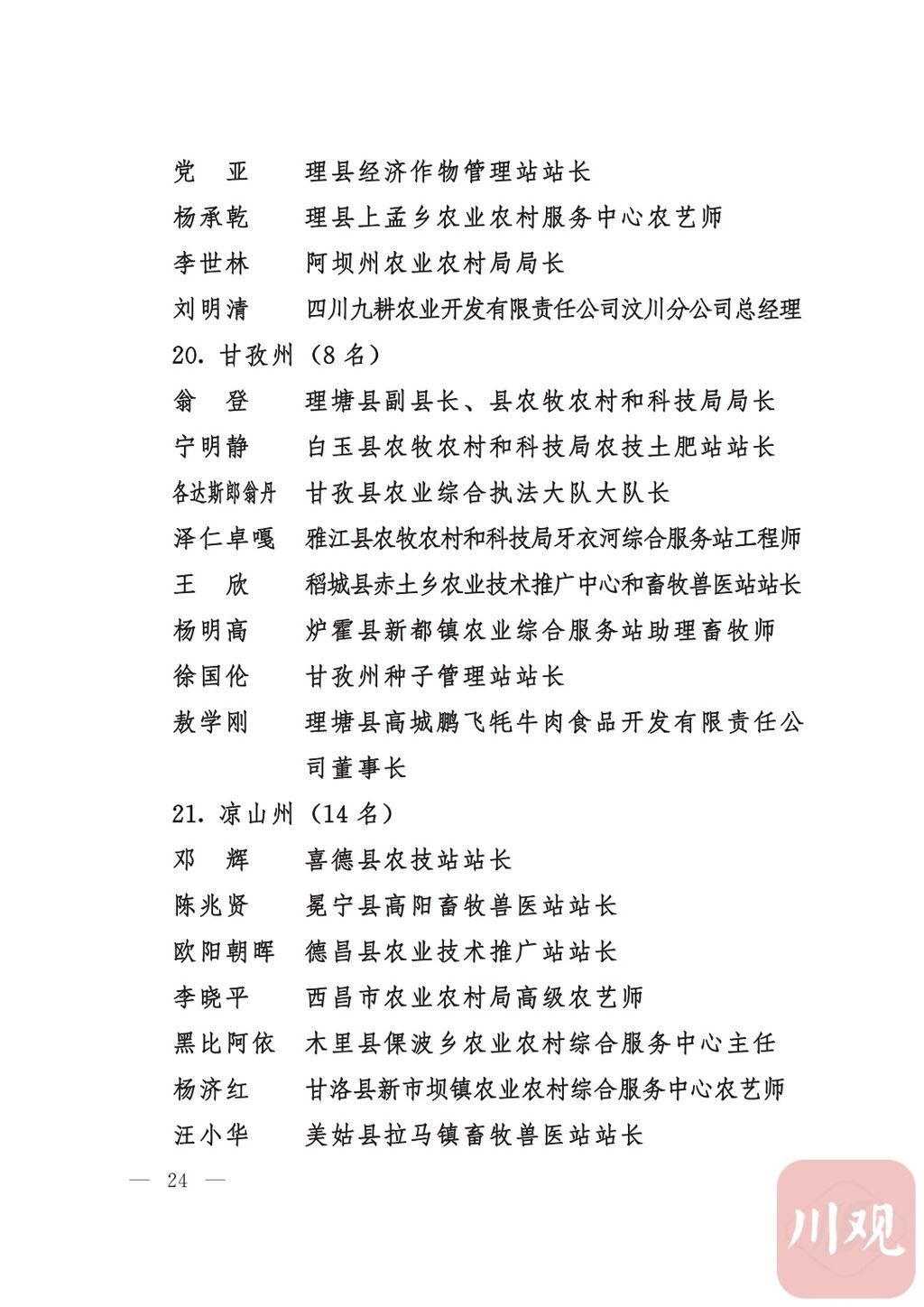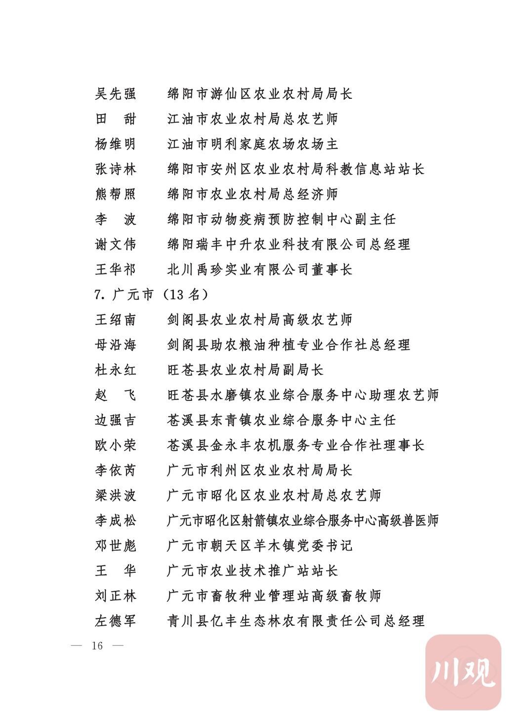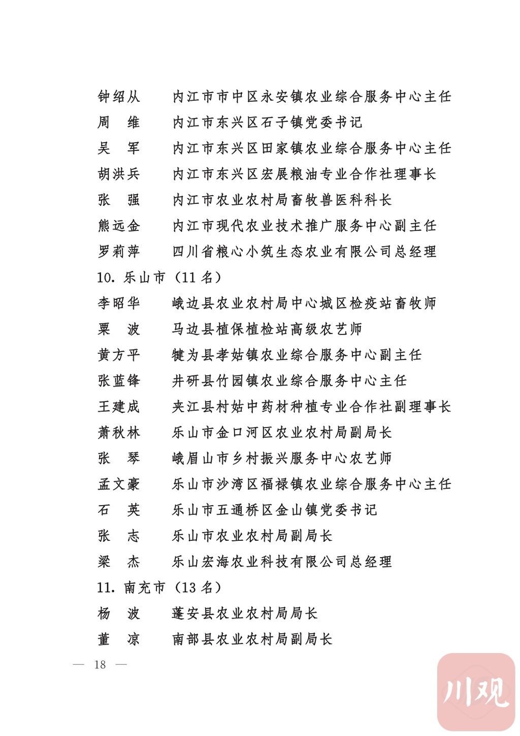 四川省“稻香杯”暨农业丰收奖先进集体、先进个人名单