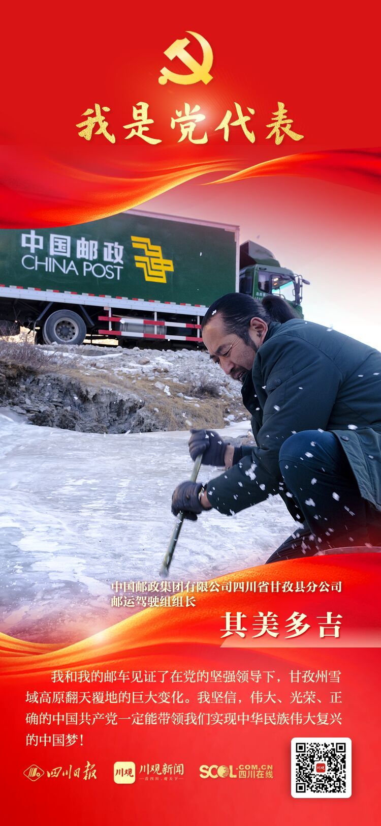 他们来自生产和工作一线,是全省510多万共产党员的优秀代表;他们将肩负全省党组织和党员重托,赴京出席党的二十大。川观新闻推出“我是党代表”专栏,报道我省出席党的二十大代表中的25位基层党代表,展现他们践行习近平总书记系列重要讲话精神和推动新时代治蜀兴川再上新台阶的奋进故事和先进事迹。