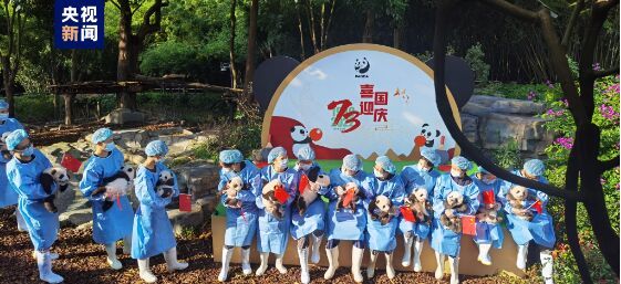 此次亮相活动将“国宝”大熊猫与国庆、“国球”乒乓球元素相结合,展示成都熊猫基地科研繁育成果,庆祝新中国成立73周年。