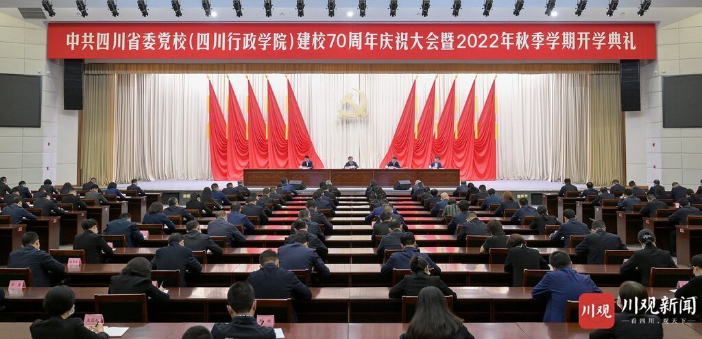 9月28日上午,省委党校(四川行政学院)举行建校70周年庆祝大会暨2022年秋季学期开学典礼,省委书记王晓晖出席并讲话。他强调,党校事业是党的事业的重要组成部分。省委党校70年奋斗历程充满艰辛、成果丰硕,标志着党校发展迈上了新的台阶,也开启了实现高质量发展新的征程。要深入学习贯彻习近平总书记关于党校办学治校系列重要指示精神,全面落实党中央大政方针和省委决策部署,聚焦主责主业,服务中心大局,以更加昂扬的精神状态迈步新征程、建功新时代,守正创新推动我省党校事业高质量发展。