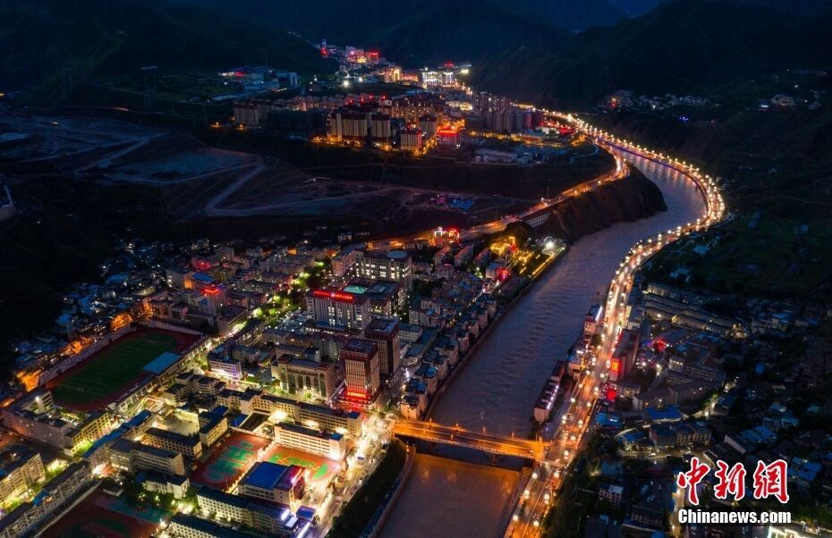 昌都市是历史上茶马古道的物资集散地,素有“藏东明珠”的美称。昌都市于2012年4月全面启动旧城改造工作,并同步实施昌都城市基础设施改造提升工程,极大地改善了市区基础设施条件,优化了人居环境,提升了城市综合承载能力。图为俯瞰夜幕下的昌都市区。中新社记者 何蓬磊 摄