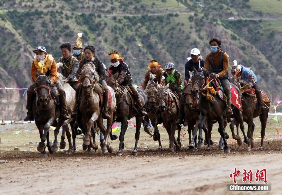 被誉为“澜沧江源头第一县”的青海省玉树州杂多县举行赛马会,在青海玉树,当地藏族民众无论祭山敬神,迎宾送客,操办婚事,都离不开赛马,马匹是他们最好的“朋友”。中新社记者 胡贵龙 摄