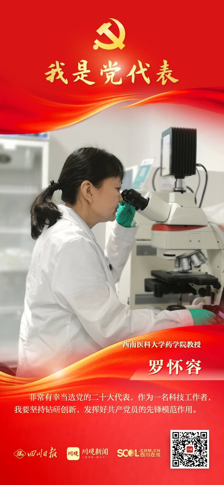 他们来自生产和工作一线,是全省510多万共产党员的优秀代表;他们将肩负全省党组织和党员重托,赴京出席党的二十大。川观新闻推出“我是党代表”专栏,报道我省出席党的二十大代表中的25位基层党代表,展现他们践行习近平总书记系列重要讲话精神和推动新时代治蜀兴川再上新台阶的奋进故事和先进事迹。