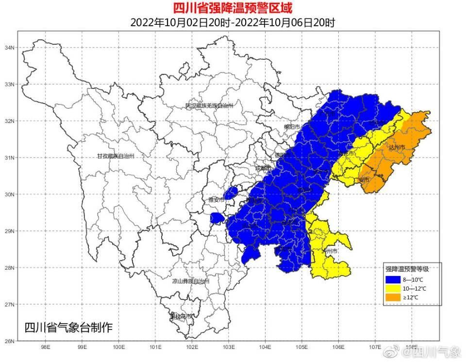 四川省气象台10月2日16时发布强降温蓝色预警: