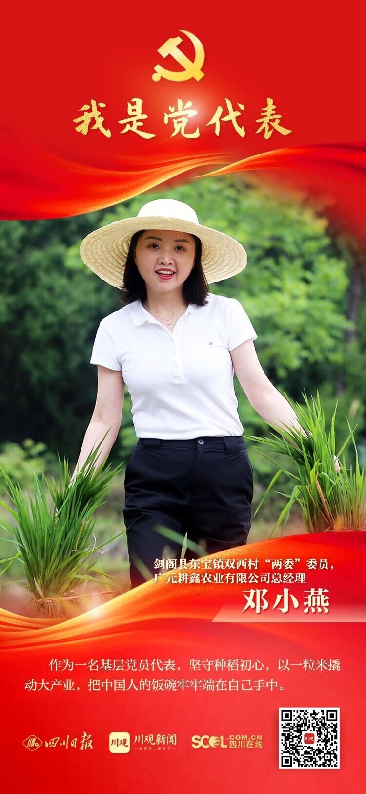 他们来自生产和工作一线,是全省510多万共产党员的优秀代表;他们将肩负全省党组织和党员重托,赴京出席党的二十大。川观新闻推出“我是党代表”专栏,报道我省出席党的二十大代表中的25位基层党代表,展现他们践行习近平总书记系列重要讲话精神和推动新时代治蜀兴川再上新台阶的奋进故事和先进事迹。