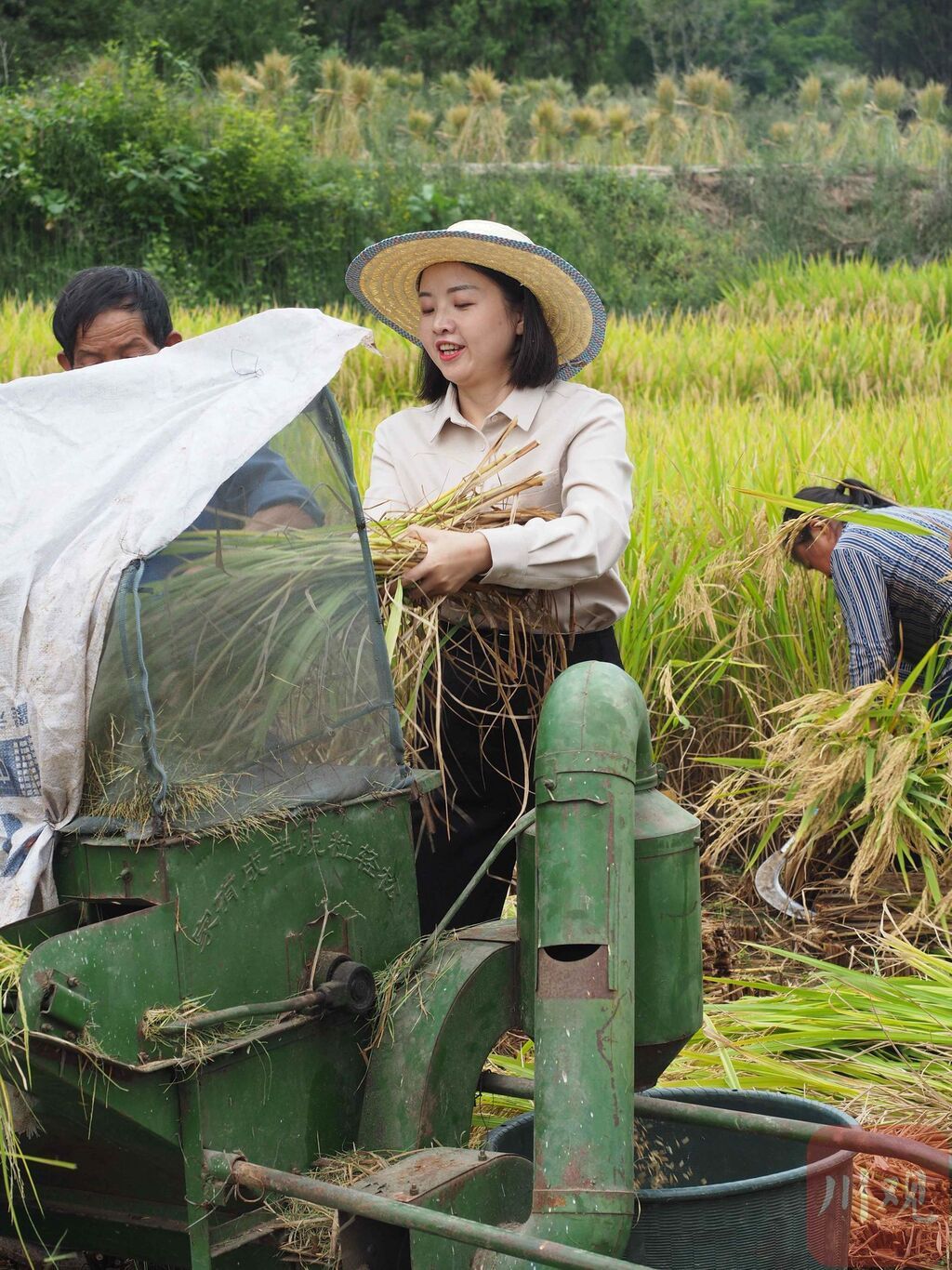 从失败中寻找教训,邓小燕深思熟虑之后,重拾信心,四处求学考察,市内甚至省外都留下了她学习请教的足迹。她走进田间地头和老百姓沟通,也前往农科院学习种植水稻方面的专业知识,草帽和上卷的裤腿成为她的标配,她也由“都市白领”渐渐变成了“新农民”。通过对当地土壤、水质、气候进行专业分析,选择了最适合这里的水稻品种——川优6203。