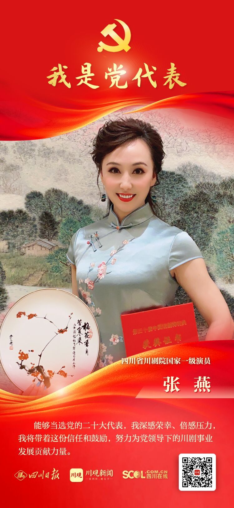 这位老戏迷想邀请张燕书写一句话作为回信:“梅花香自苦寒来。”张燕拿着信,看到这句话很有感触。2021年,第30届中国戏剧梅花奖终评结果出炉,张燕凭借川剧《死水微澜》“摘梅”。张燕说,回望自己这些年来的艺术生涯,确实可以用“梅花香自苦寒来”来形容。