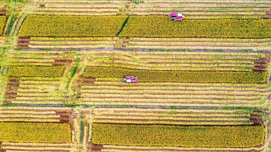 四川省眉山市东坡区永丰村稻田开镰收割 资料图(侯建明 摄)