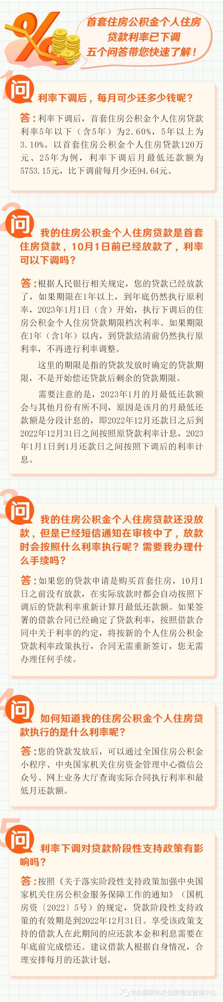 据中央国家机关住房资金管理中心消息,首套个人住房公积金贷款利率已下调,五个问答带您快速了解↓↓