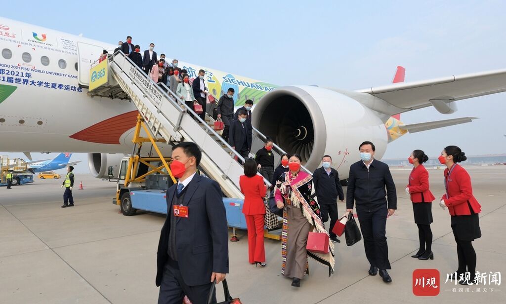 10月13日15时10分许,出席中国共产党第二十次全国代表大会的四川省代表团代表抵达北京首都国际机场,豪情满怀共赴金秋盛会。
