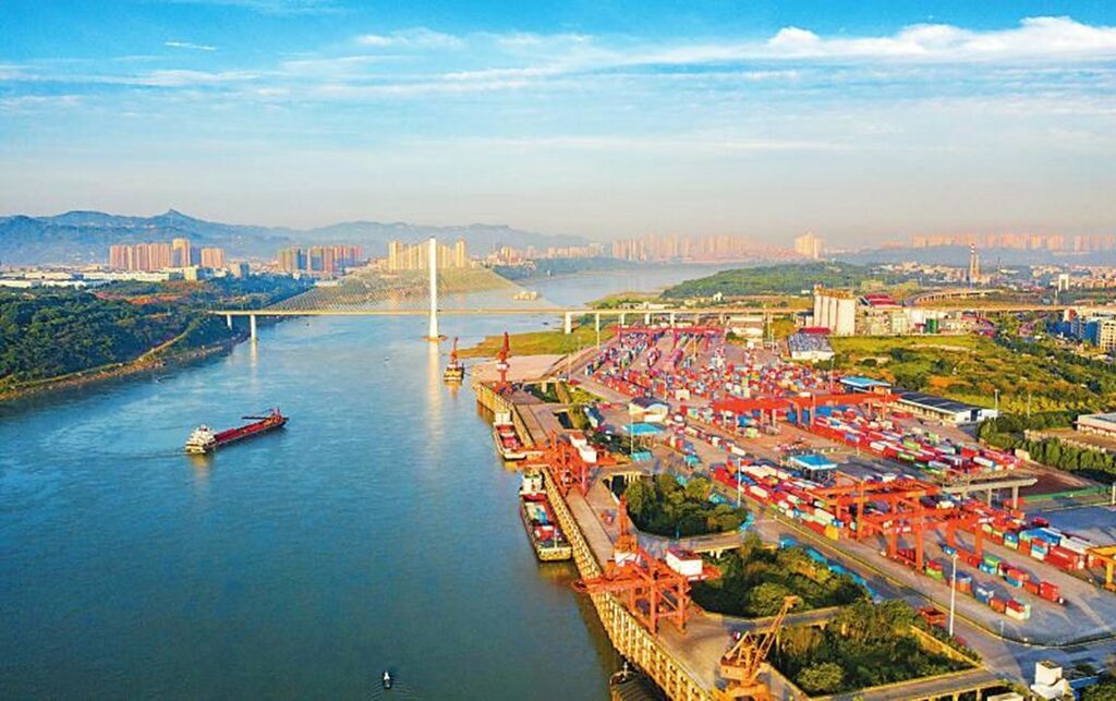 随着成渝地区双城经济圈水运合作加强,四川首个年吞吐能力达到100万标准集装箱的码头泸州港一片繁忙。刘学懿/摄