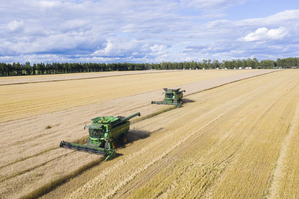 黑龙江北大荒,一台台收割机车往来穿梭,丰收的画卷在这片黑土地铺展开来。
