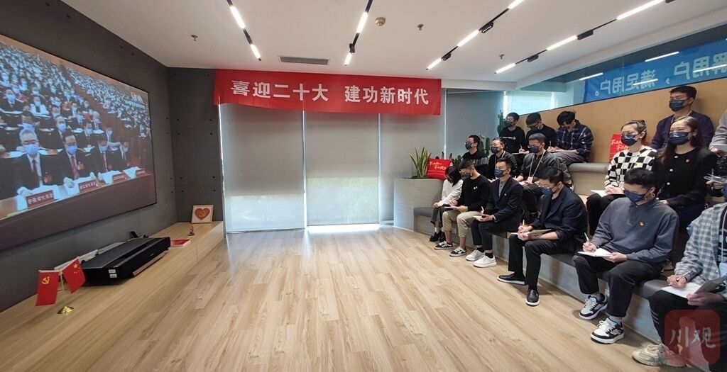 成都极米科技股份有限公司员工集中收看党的二十大开幕会直播。(四川在线记者 吴枫 摄)
