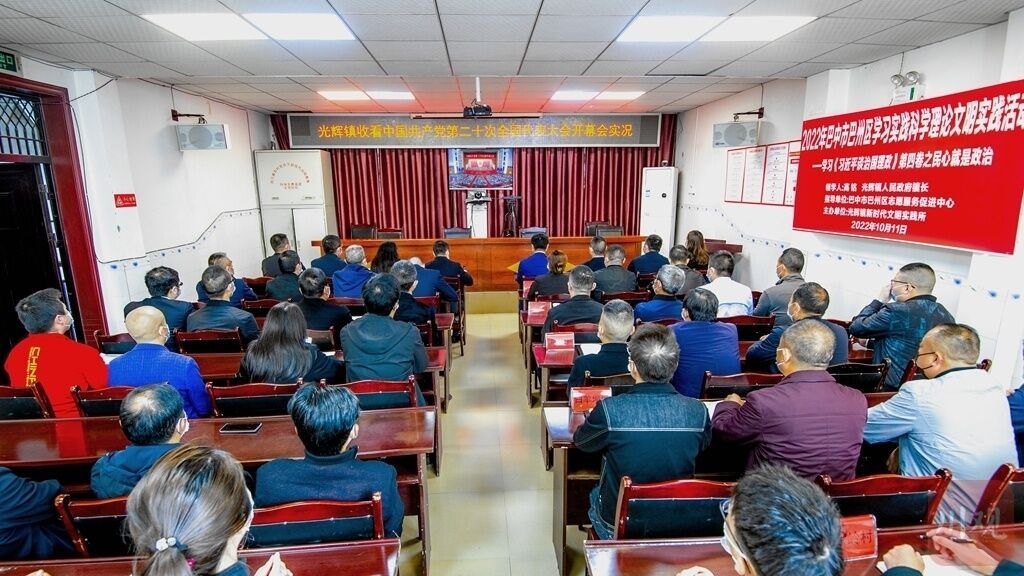巴中市巴州区光辉镇干部群众集中收看党的二十大开幕会直播。(川观拍客 付海旭 摄)